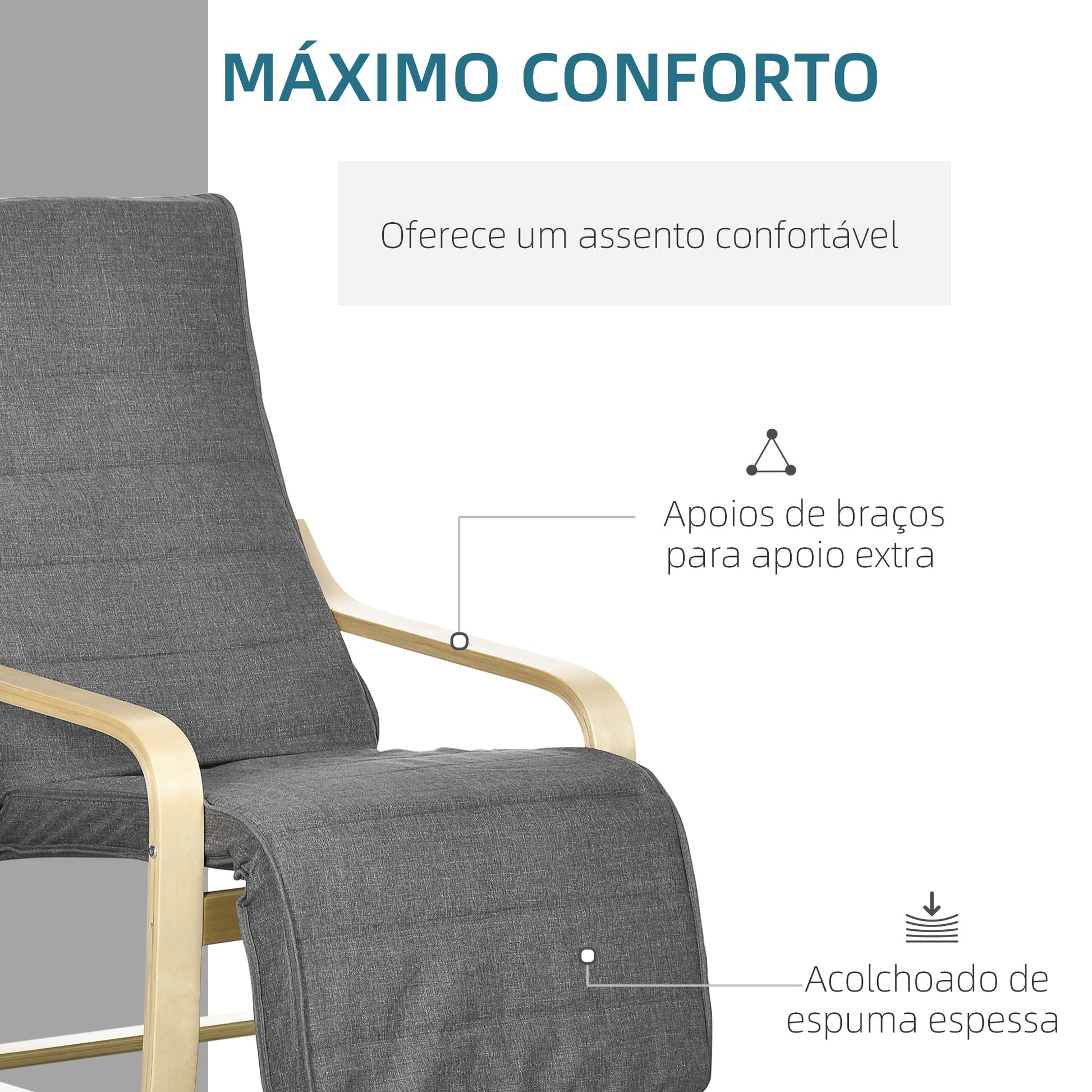 A Poltrona Relax Cinza é uma peça elegante e confortável para qualquer ambiente da sua casa. Com um design clássico-moderno em cor clara de bétula e estofamento cinza, esta poltrona proporcionará um ar renovado e minimalista ao seu espaço. O apoio de pés ajustável em 5 posições permite que encontre a melhor posição para relaxar as pernas.