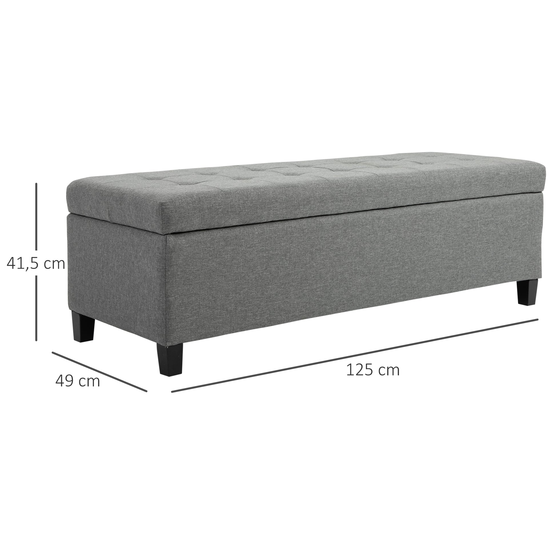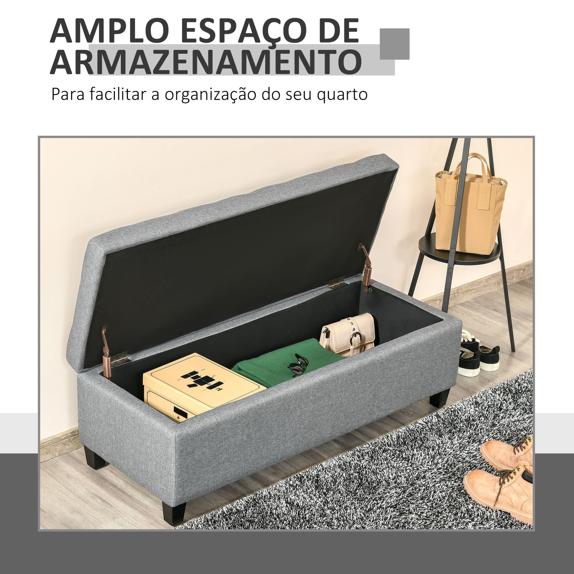 Banco de Armazenamento Acolchoado – 125x49x41,5 cm – Cinza – Tecido de linho sintético