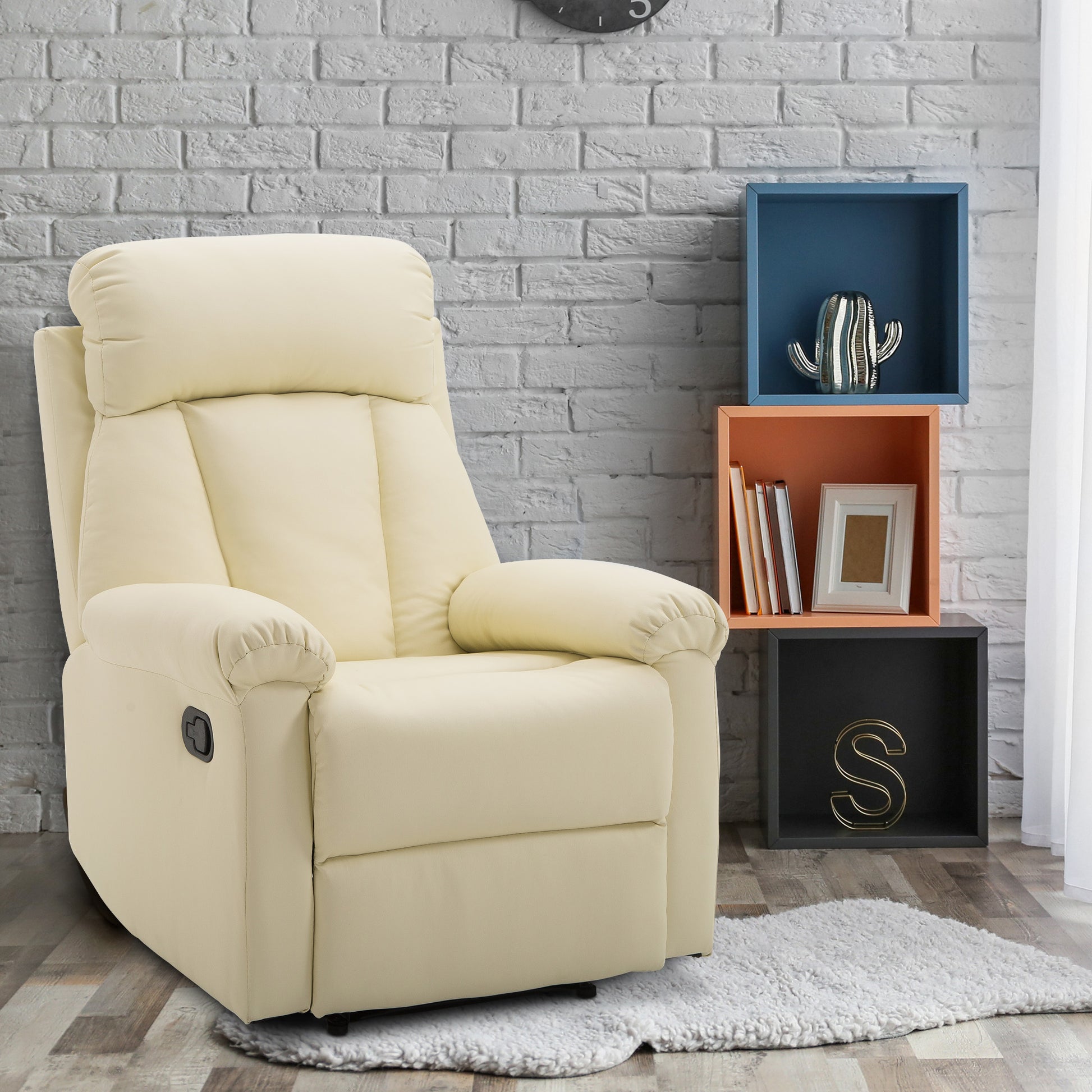 Poltrona Relax Reclinável – 80x97x107 cm – Bege – Aço, MDF, PU e Espuma