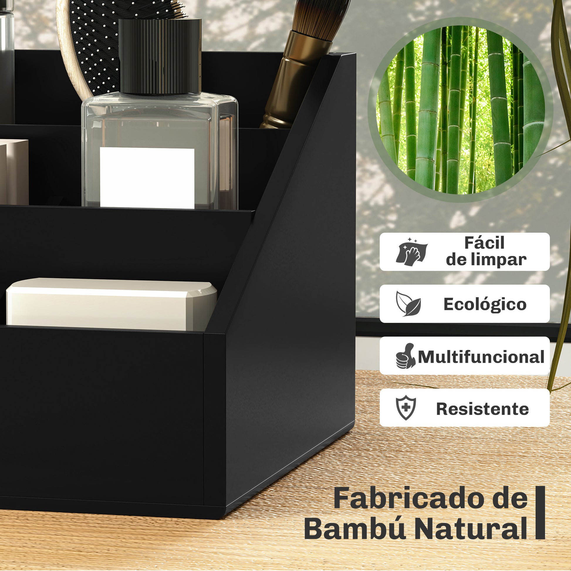 Organizador de Mesa de Escritório Bambu 33x20,5x15,5 cm - Preto