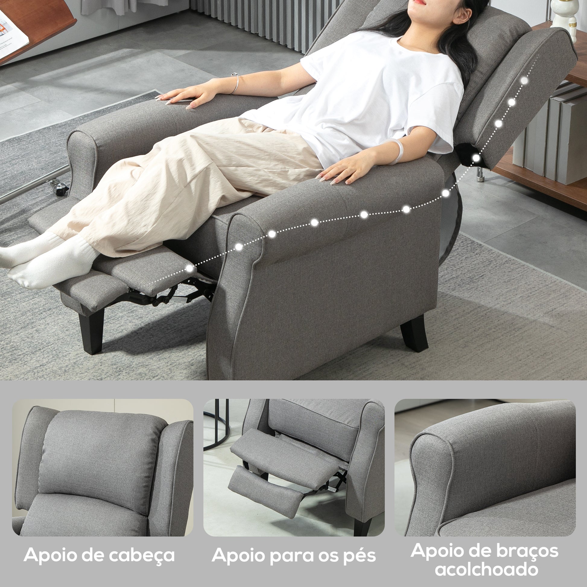 Poltrona Reclinável – 77x88x102 cm – Cinzenta – Tecido, Metal, Madeira de Borracha, Espuma