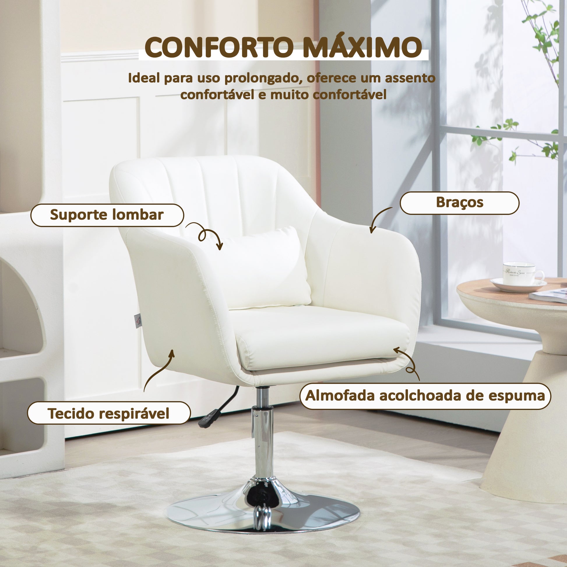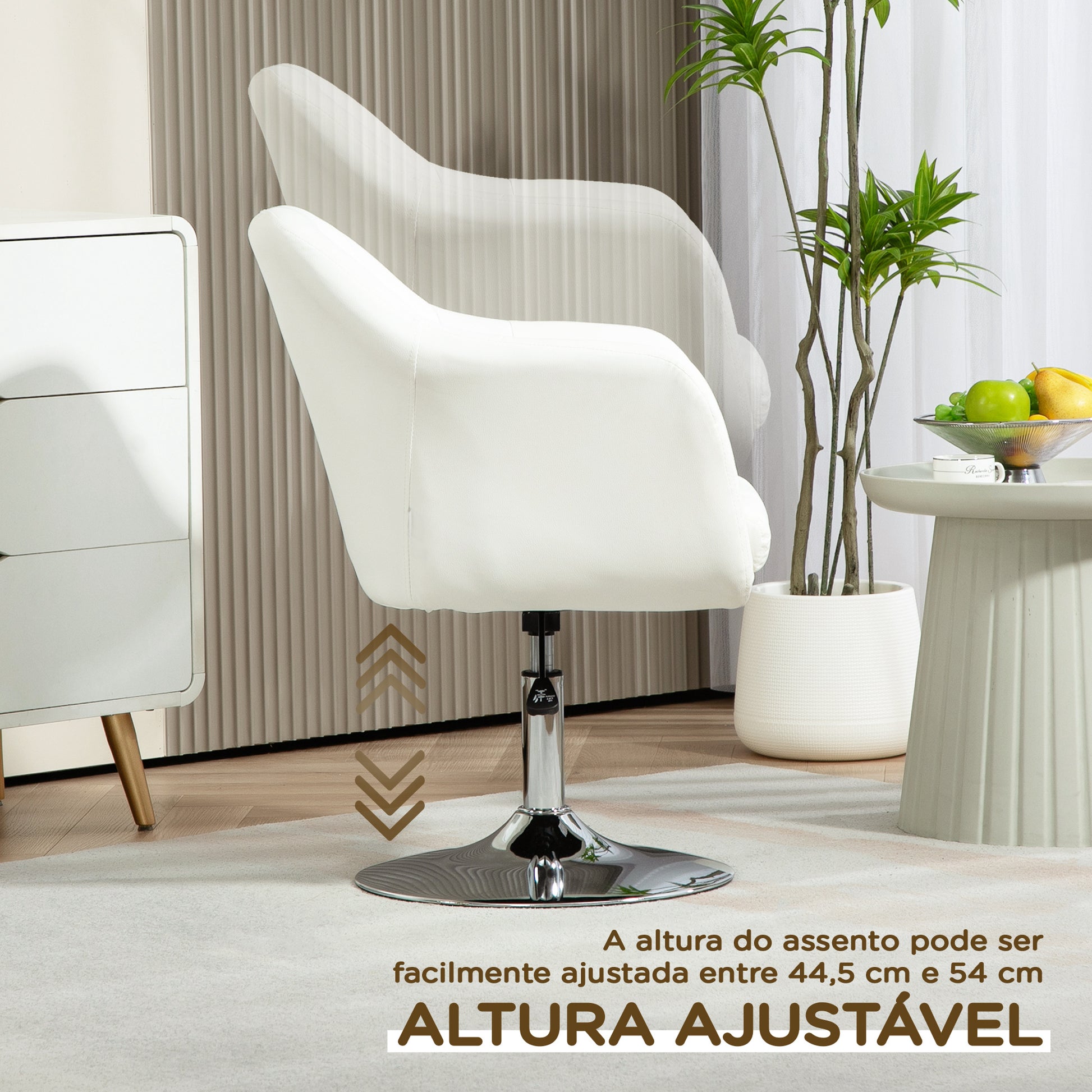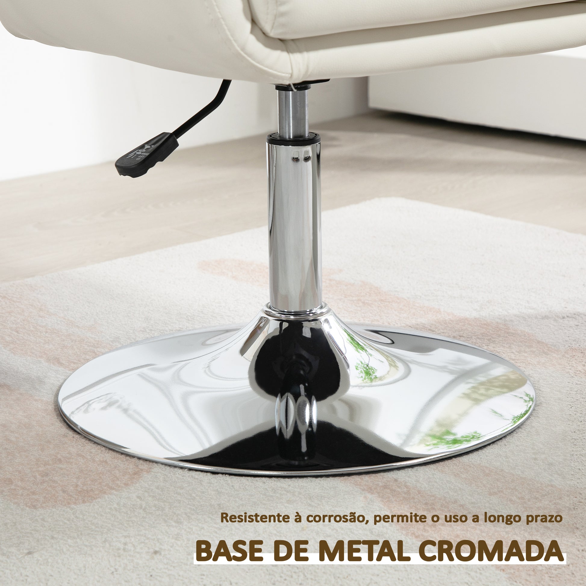 - Outras especificações: Altura ajustável entre 45-57 cm, base redonda giratória de metal galvanizado, resistente e estável