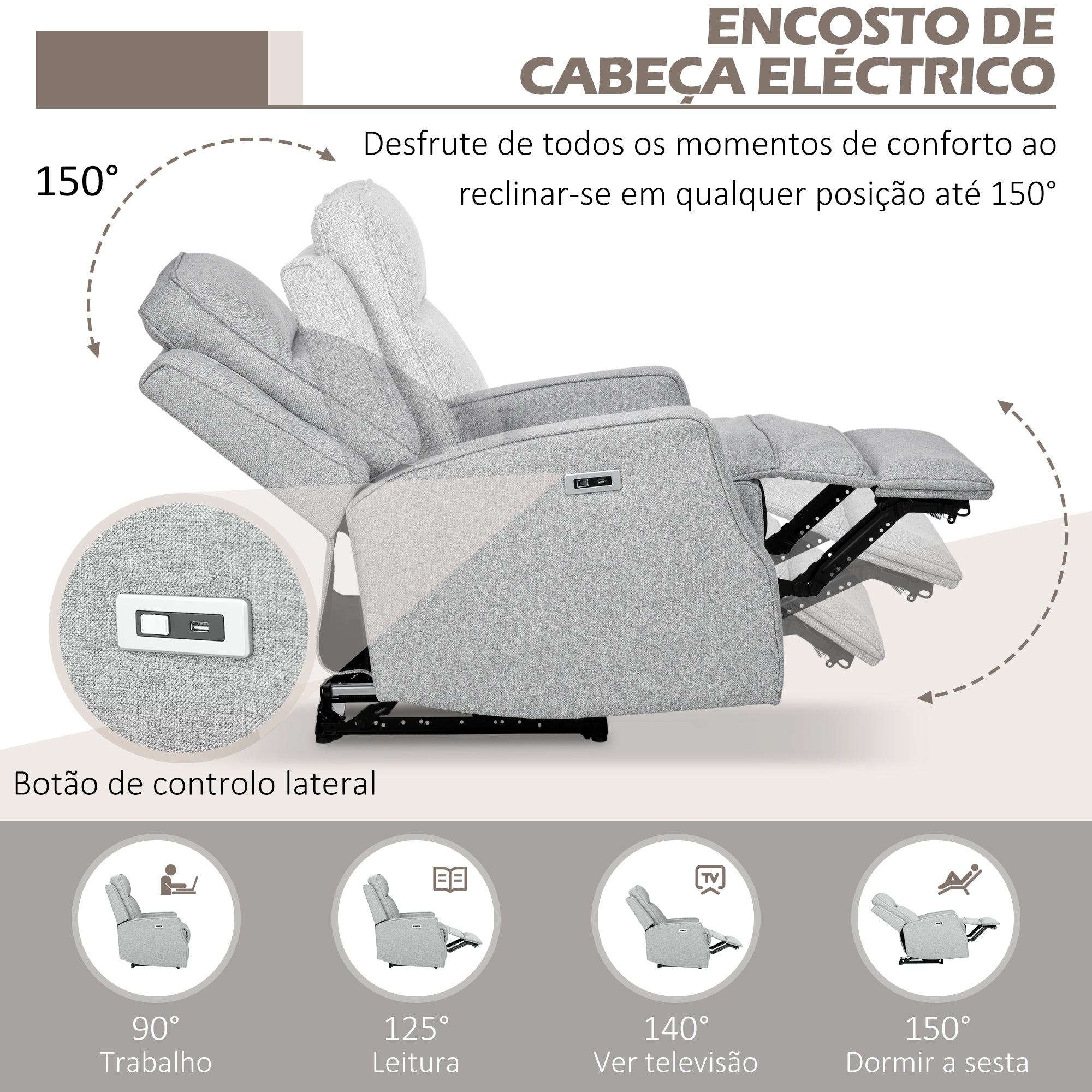 Poltrona Reclinável Elétrica Cinza Claro 84x92x104 cm