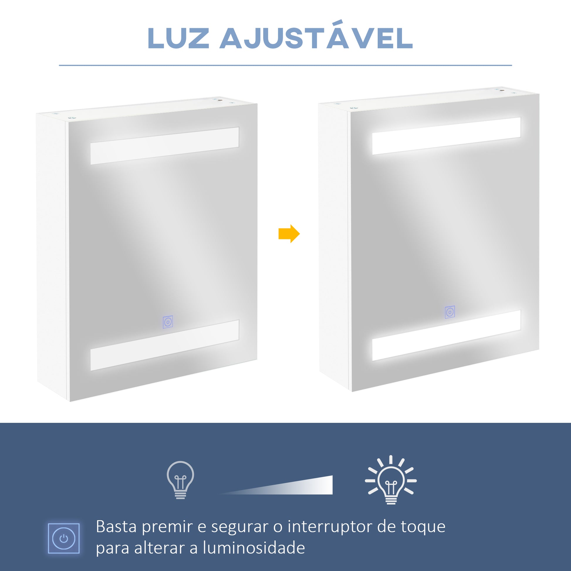 Armário de Casa de Banho com Espelho e Luz LED – 50x15x60 cm – Branco – MDF