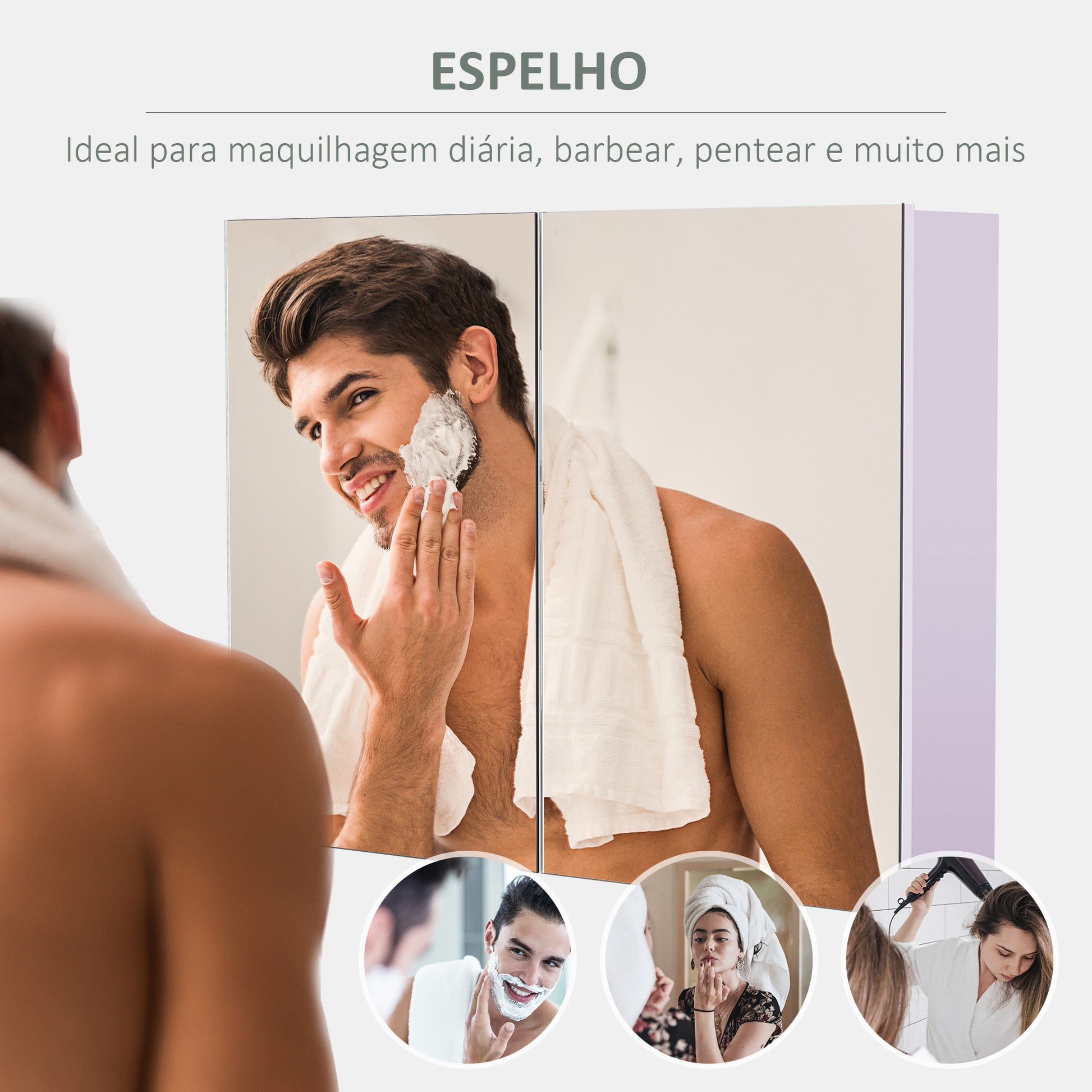 Este moderno armário de casa de banho em roxo claro é perfeito para otimizar o espaço do seu banheiro. Com 2 portas espelhadas e 3 prateleiras internas, este móvel é elegante e funcional.