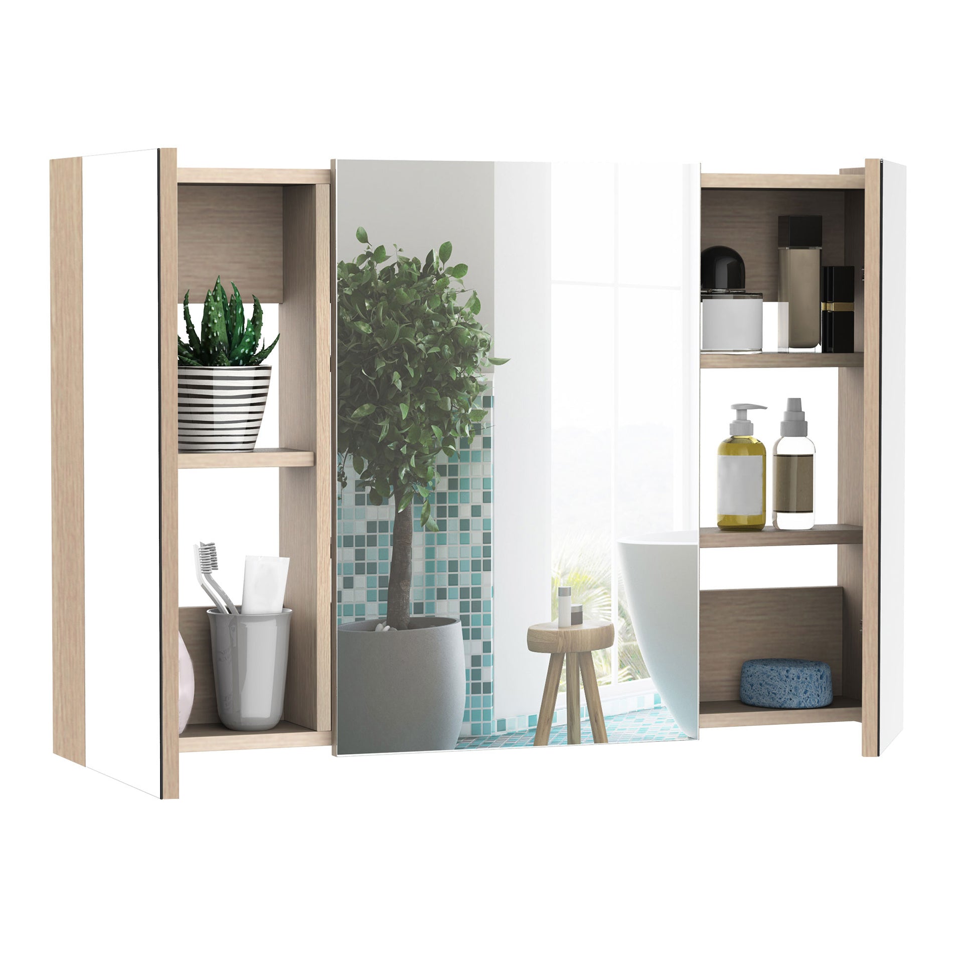 Este armário de casa de banho com portas espelhadas é perfeito para manter todos os itens em ordem. Fabricado em melamina de madeira, é resistente e de fácil manutenção. Composto por 2 armários com prateleiras interiores, oferece um amplo espaço para armazenar seus produtos de higiene pessoal. Por ser montado na parede, permite aproveitar melhor o espaço da sua casa de banho.