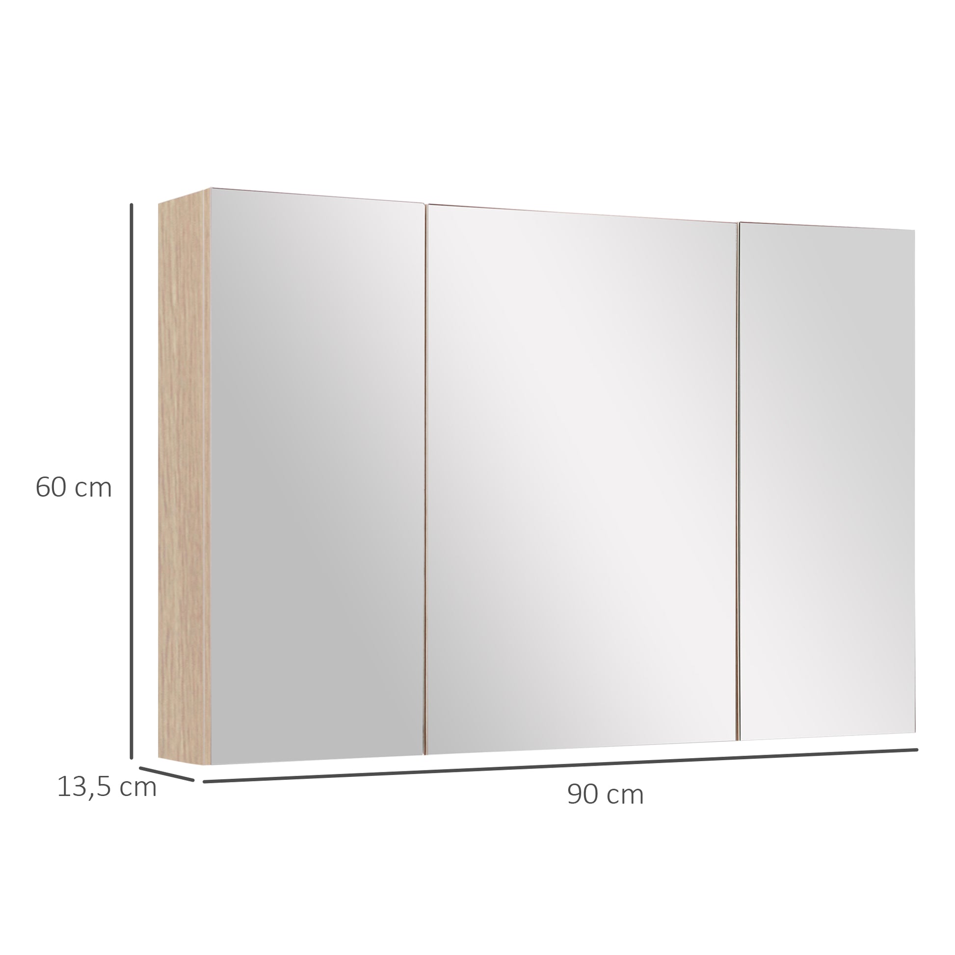 Armário de Casa de Banho com Espelho – 90x60x13,5 cm – Cor de Carvalho – Melamina de madeira
