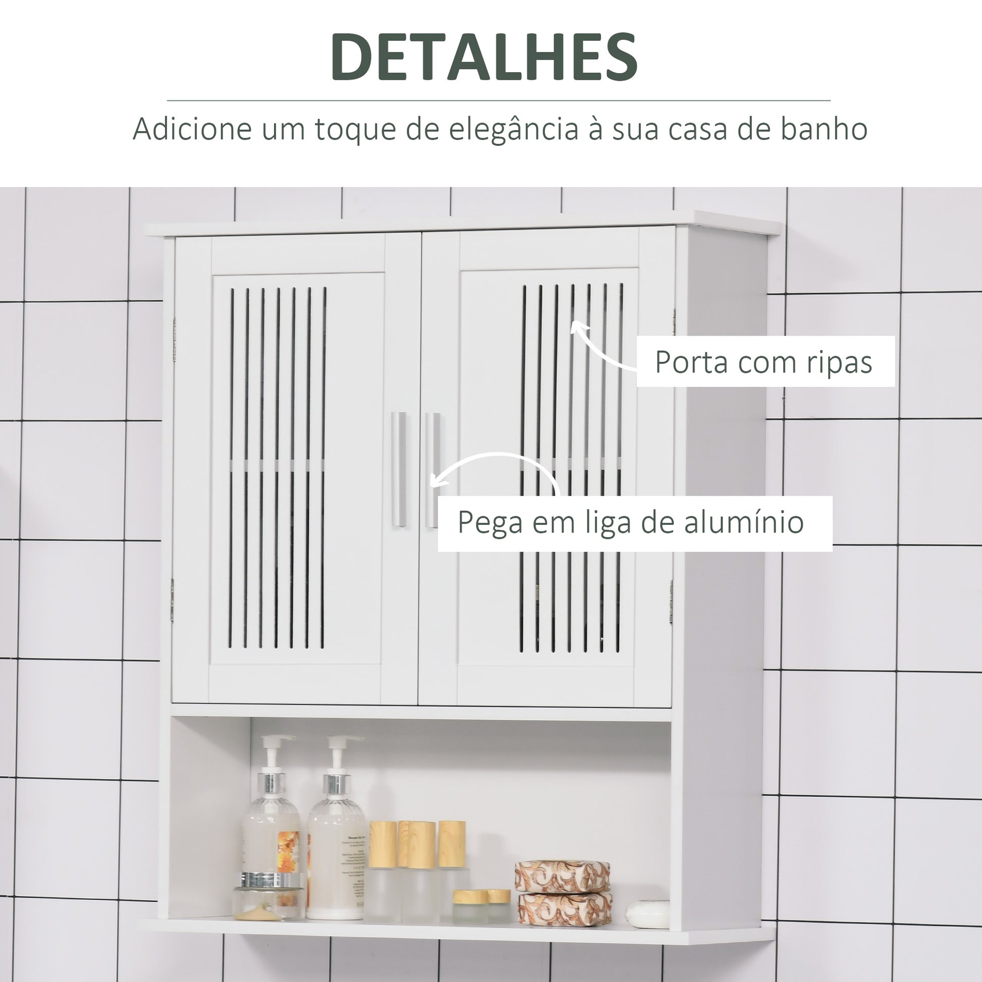 - Outras especificações: Portas duplas em ripas para proteger os objetos da humidade. Requer montagem e inclui conjunto de parafusos de expansão e manual de instruções.
