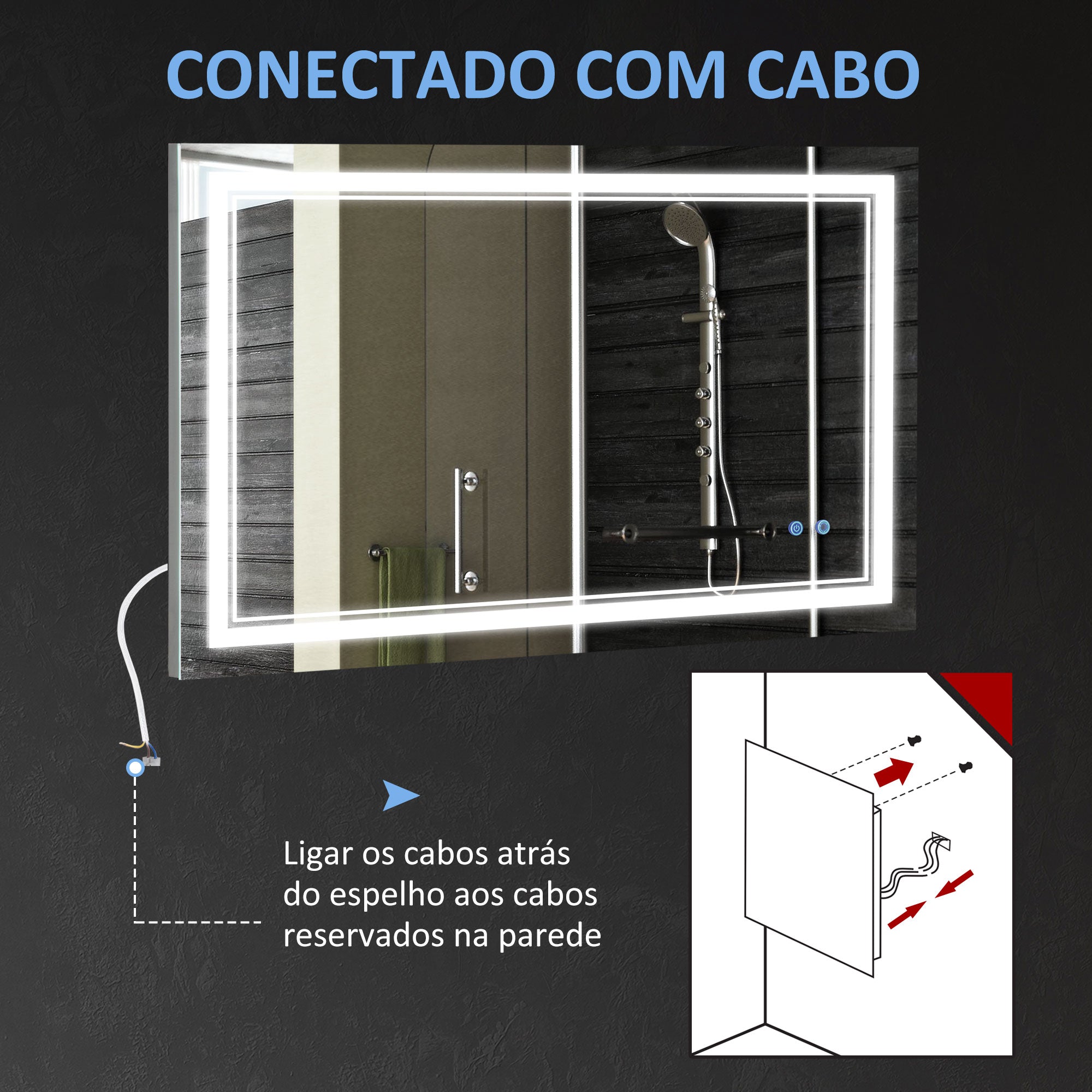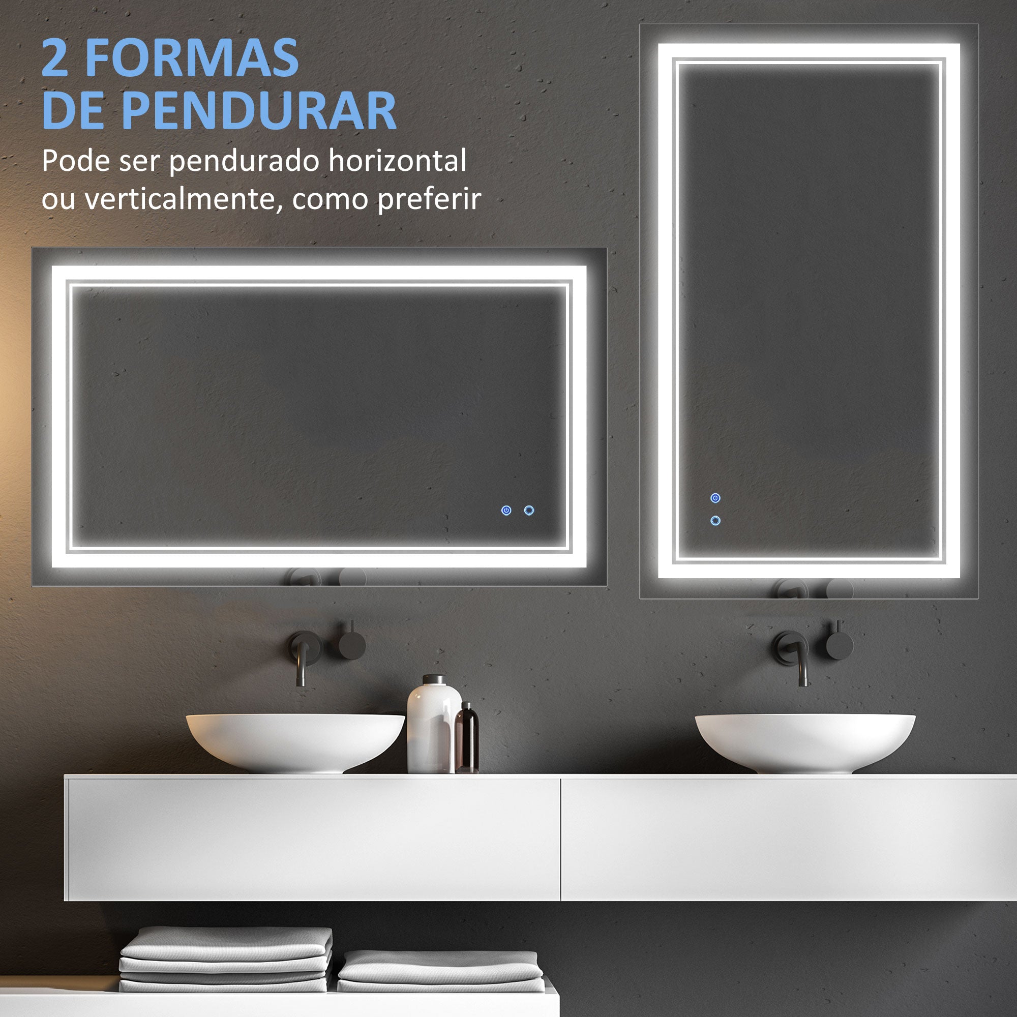 Aproveite a conveniência e modernidade deste espelho de casa de banho LED para tornar as suas rotinas diárias mais práticas e elegantes.