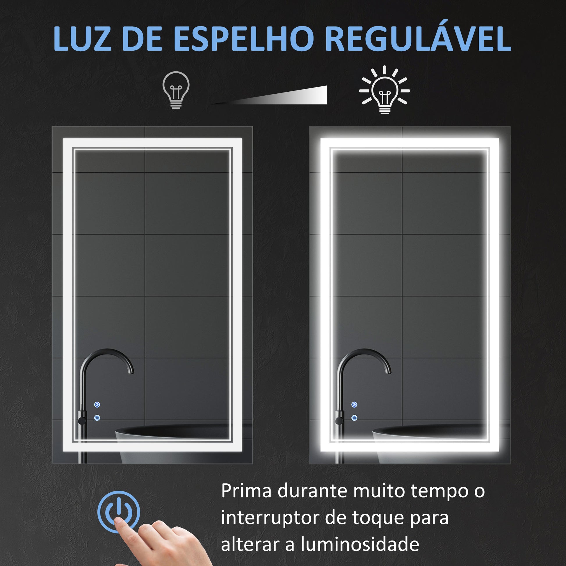 - Benefícios: Controlo tátil, função de memória, luz LED ajustável em 3 cores, resistente à água e fácil de limpar.