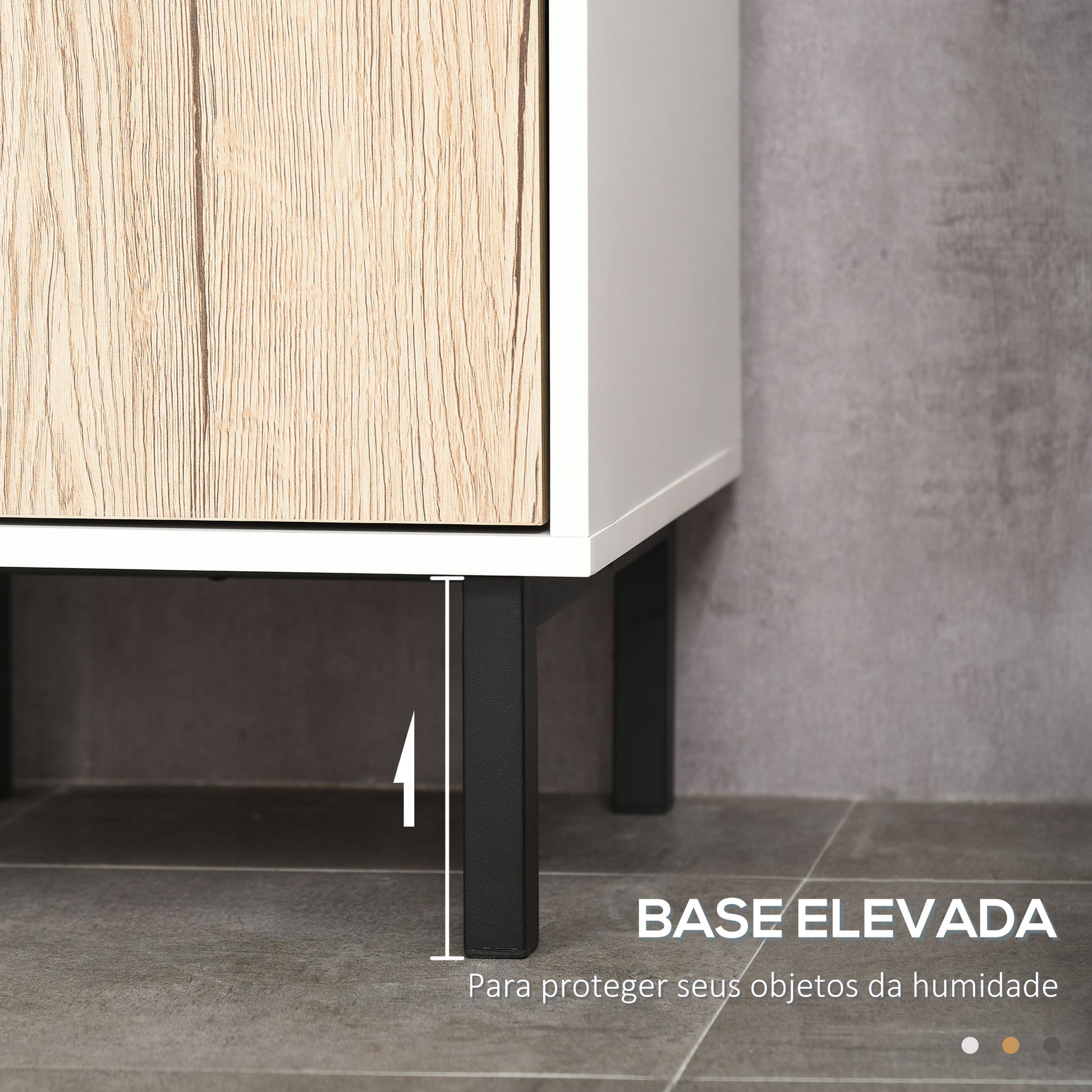 - Benefícios: Base elevada para facilitar a limpeza do piso, sistema anti-tombo para fixação na parede, prateleira ajustável em altura e amplo espaço de armazenamento.