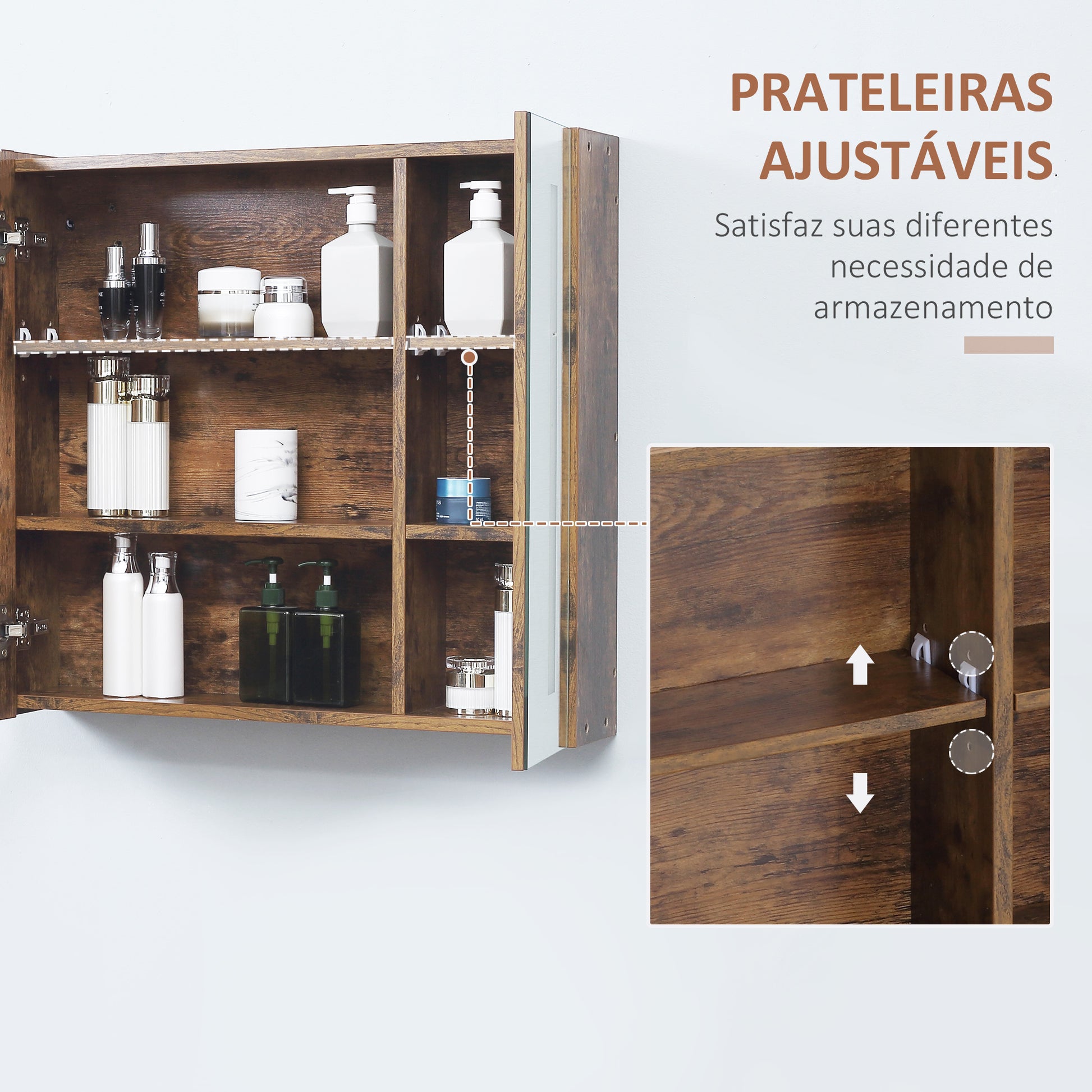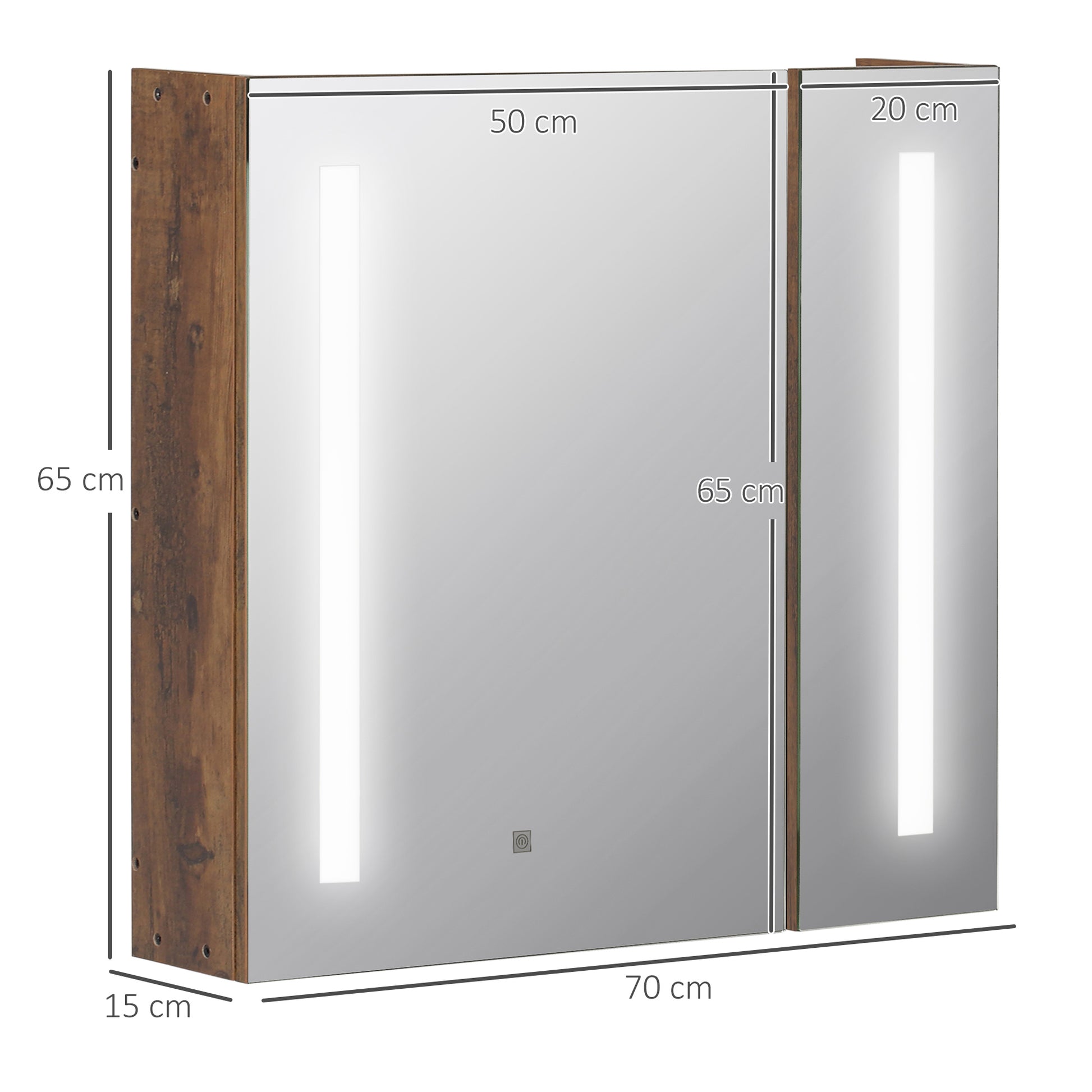 Modernize a sua casa de banho com este elegante armário de casa de banho com espelho LED em castanho rústico. Com medidas de 70x15x65 cm, este armário é a solução ideal para manter a sua casa de banho organizada e elegante.