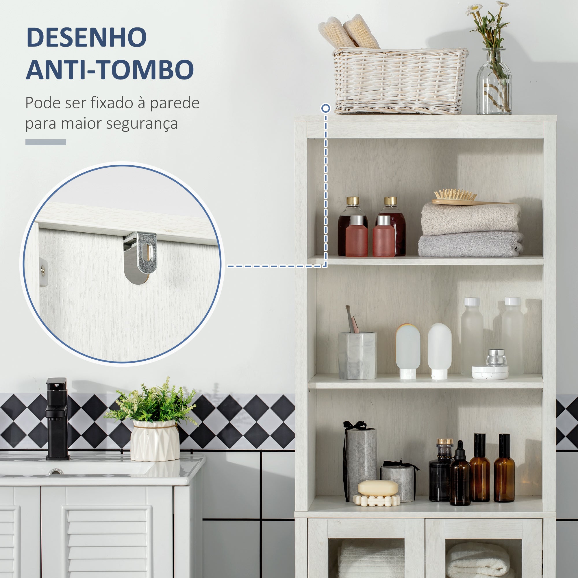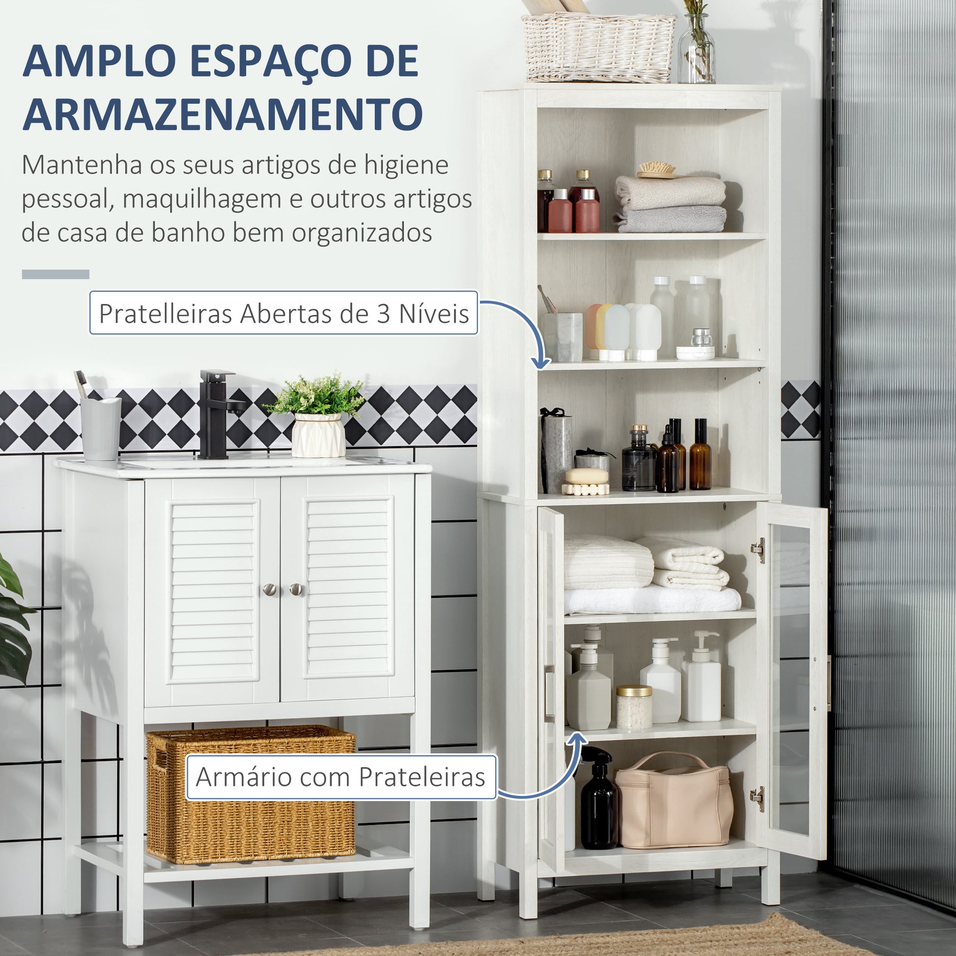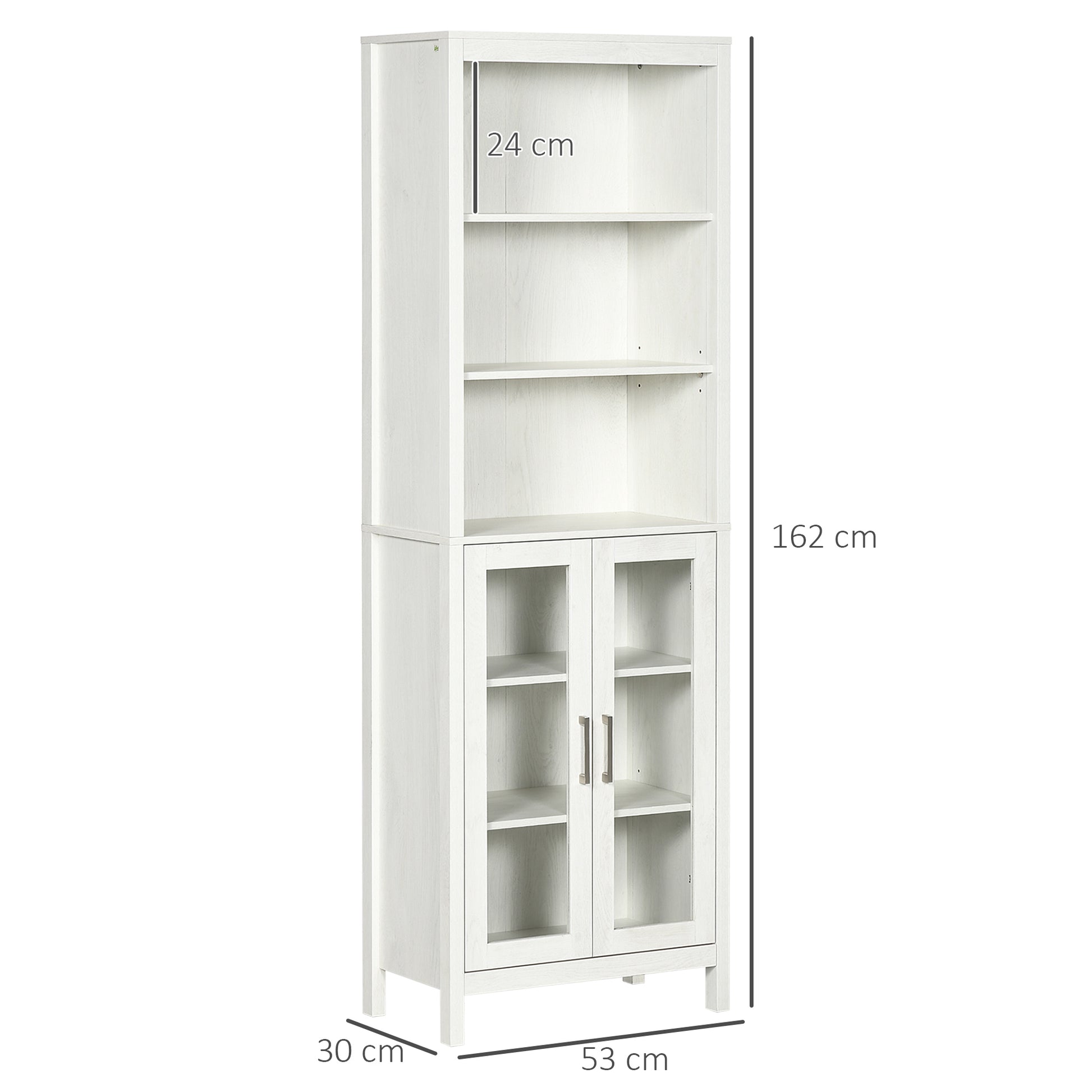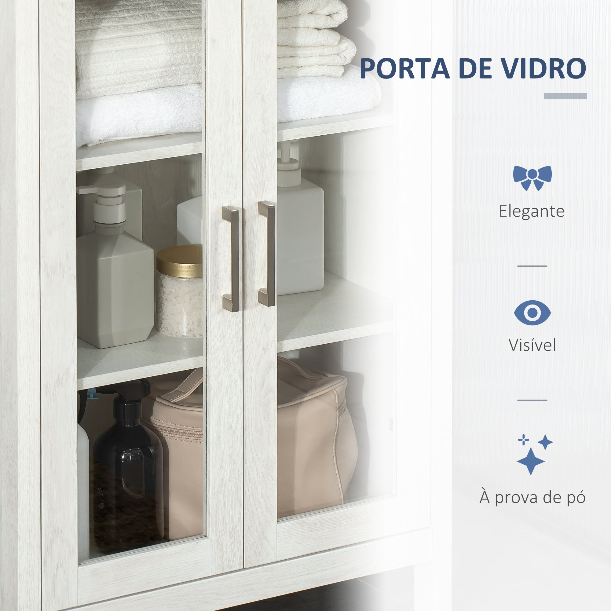 Armário Alto de Casa de Banho com 2 Portas de Vidro e 3 Prateleiras Branco 53x30x162cm