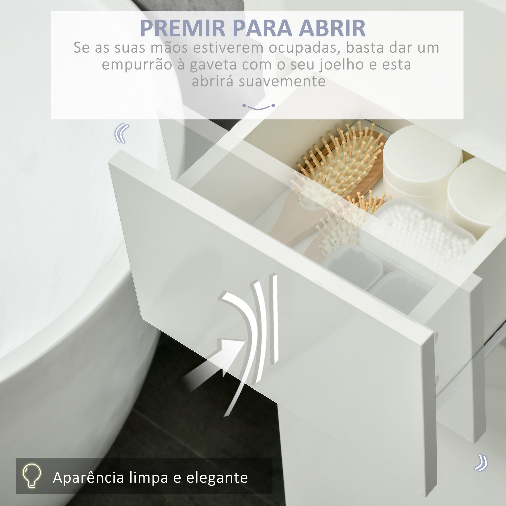 - Outras especificações: Capacidade máxima de peso: 80kg (total), 15kg (prateleira) e 15kg (gaveta). Requer montagem.