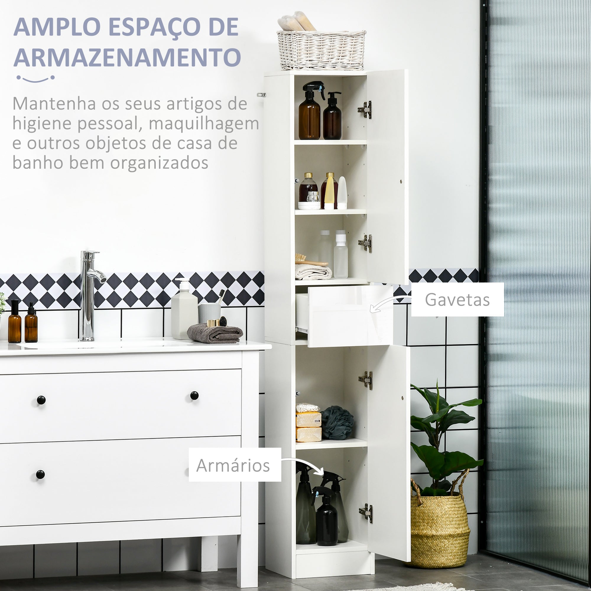 Maximize o espaço e minimize a desordem com esta coluna de casa de banho moderna e funcional. Seu design compacto e elegante se adapta facilmente a diferentes ambientes, proporcionando um armazenamento versátil e seguro.