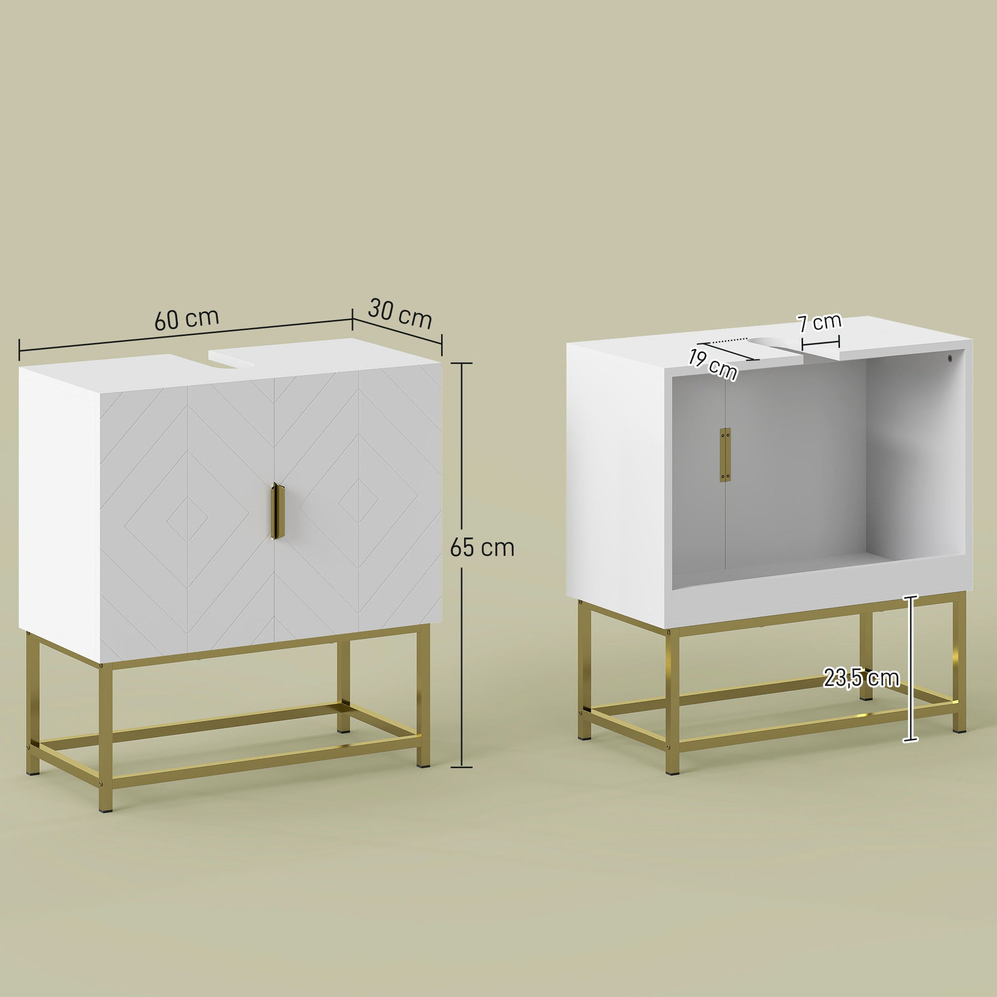 Armário para Casa de Banho Moderno – 60x30x65 cm – Branco e Dourado – MDF e Aço
