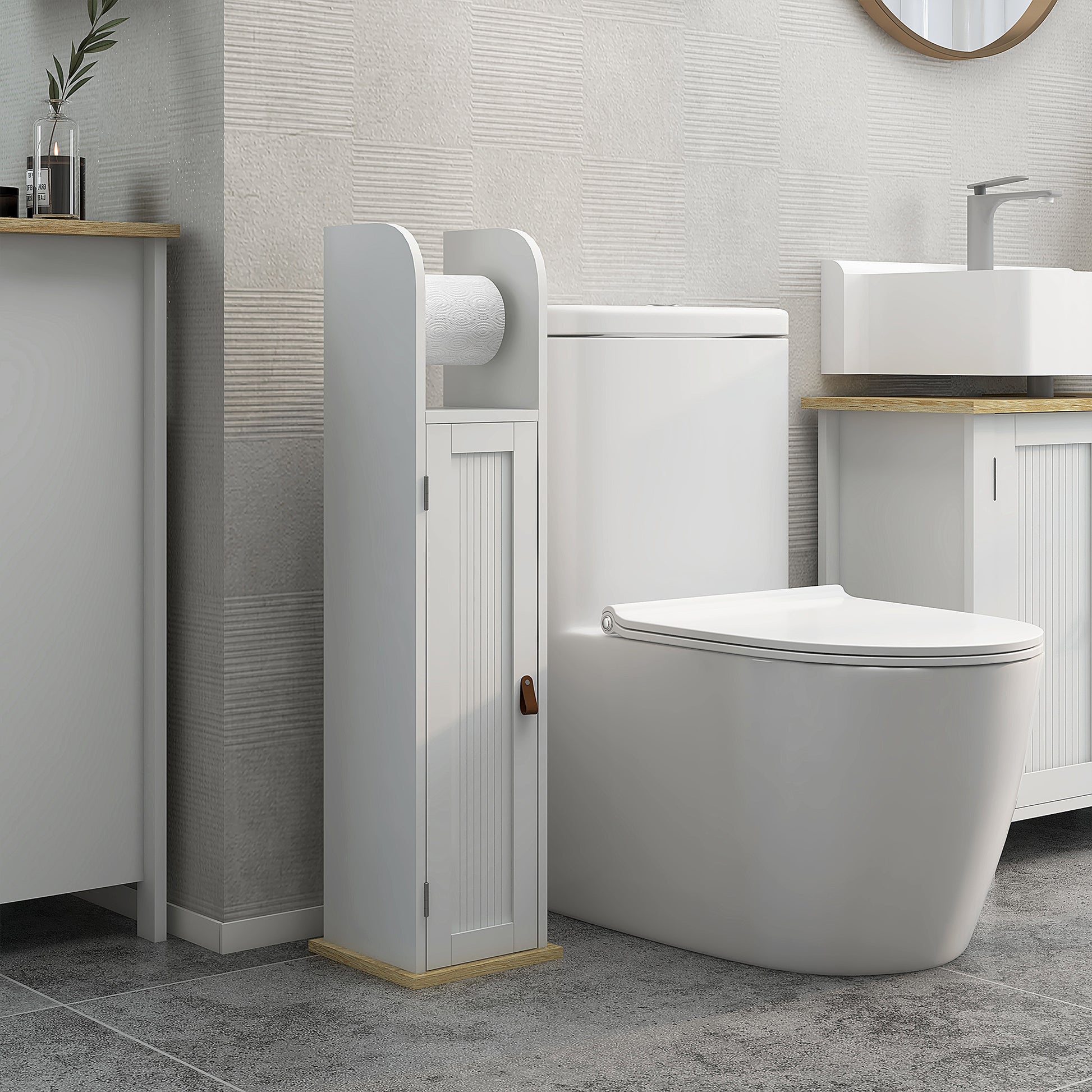 Armário Casa de Banho Branco 20x20x80 cm com Prateleiras Ajustáveis e Suporte para Papel Higiénico
