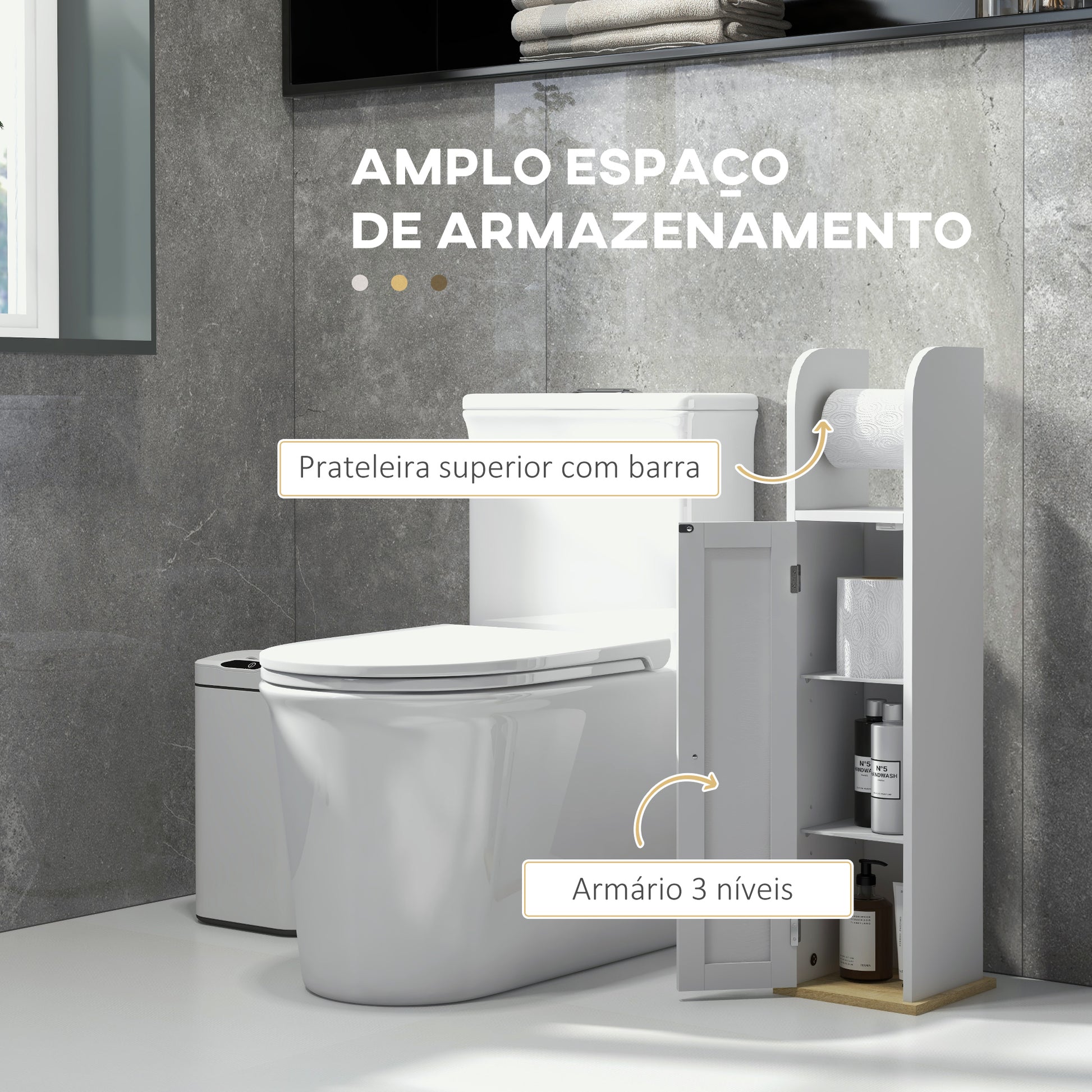 - Benefícios: Prateleira superior aberta com barra para papel higiénico, armário de 3 níveis com porta para guardar toalhas, produtos de higiene diária e material de limpeza.
