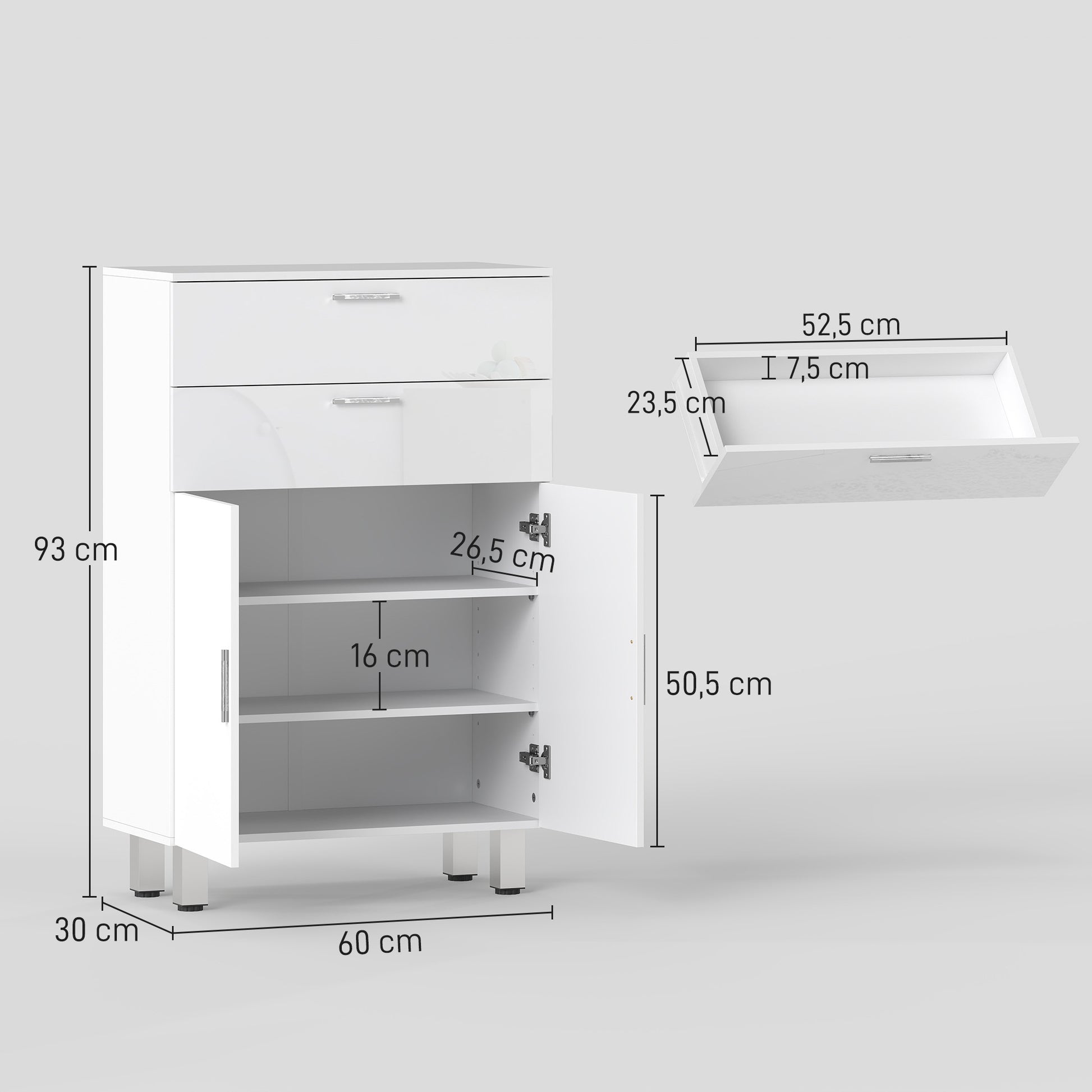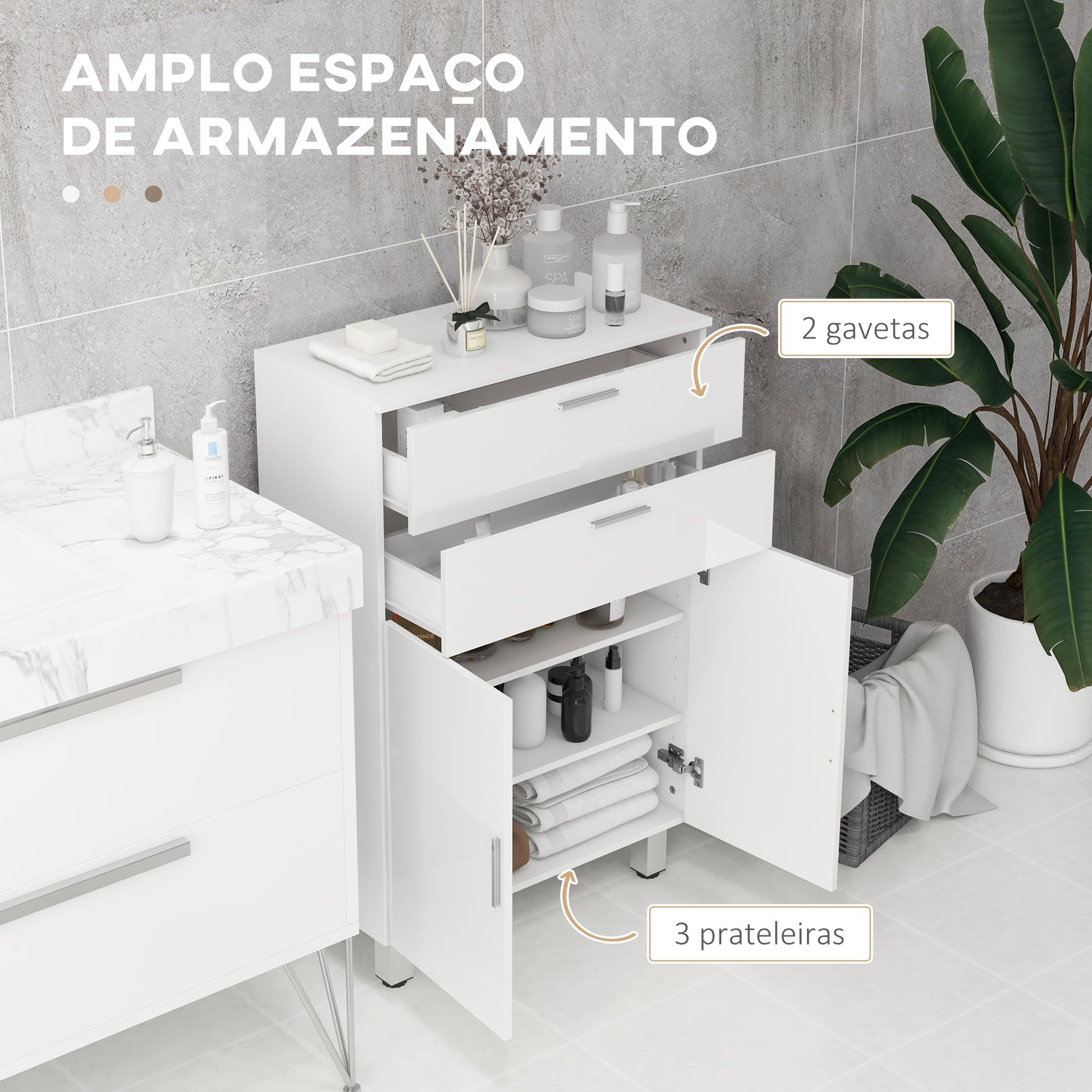 Adicione mais espaço de armazenamento à sua casa de banho com este móvel auxiliar moderno em branco de alto brilho.