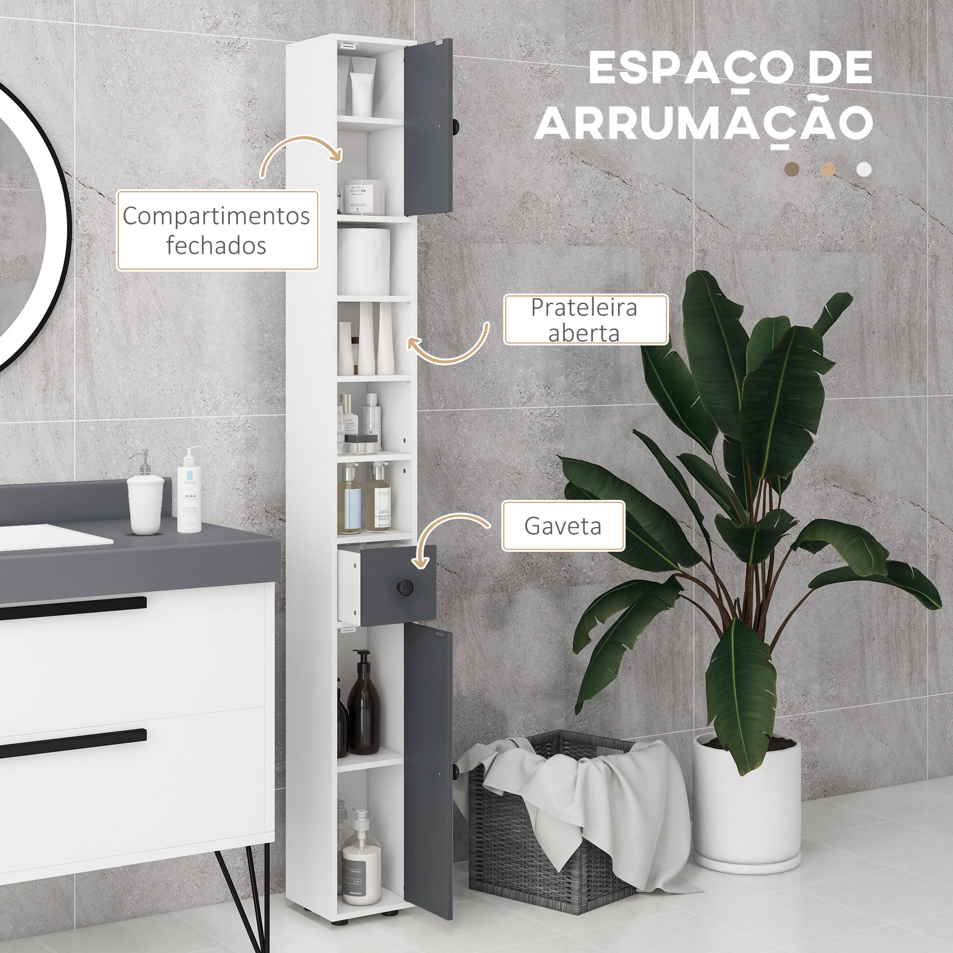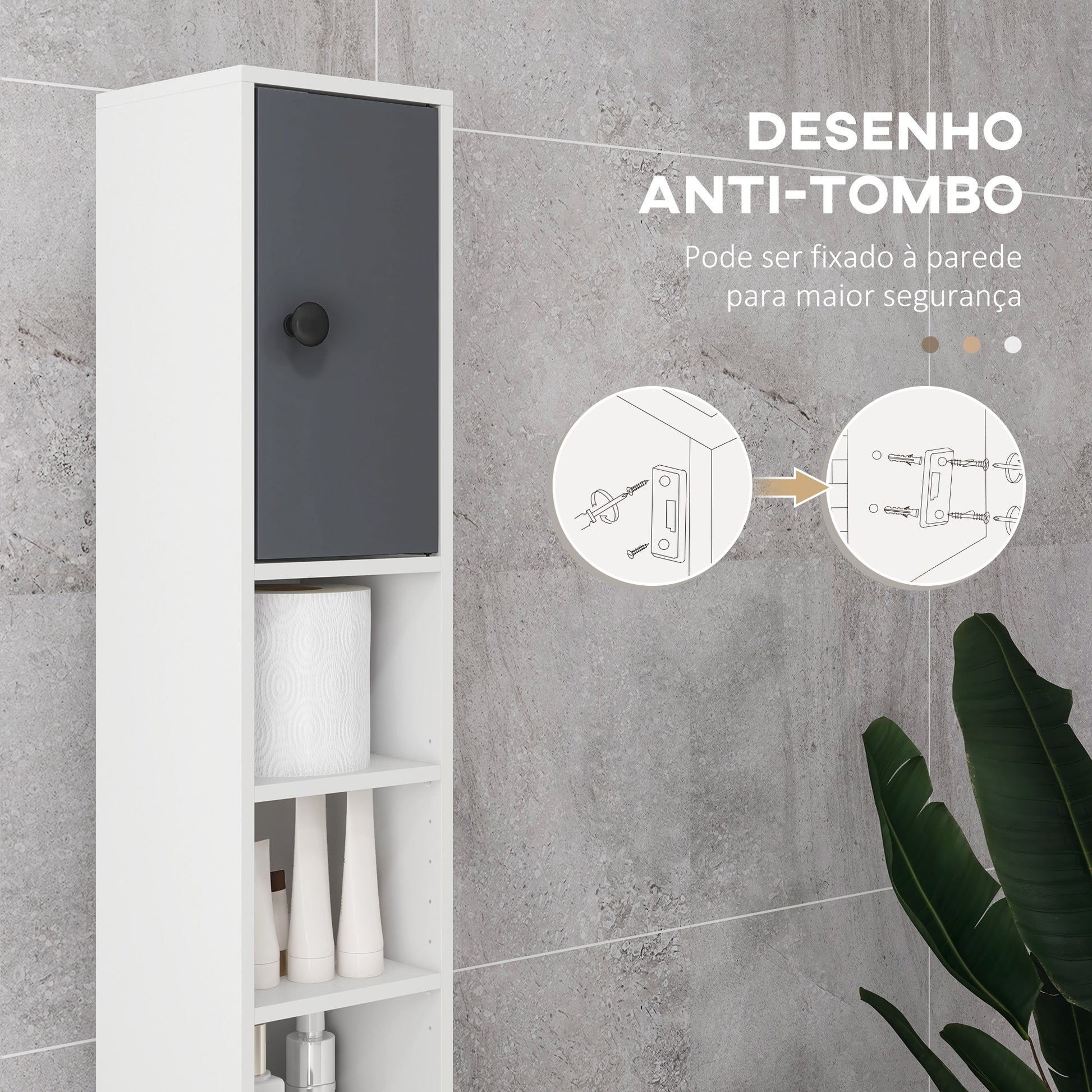 Coluna para Casa de Banho Moderna – 20x20x180 cm – Branco e Cinza – Melamina