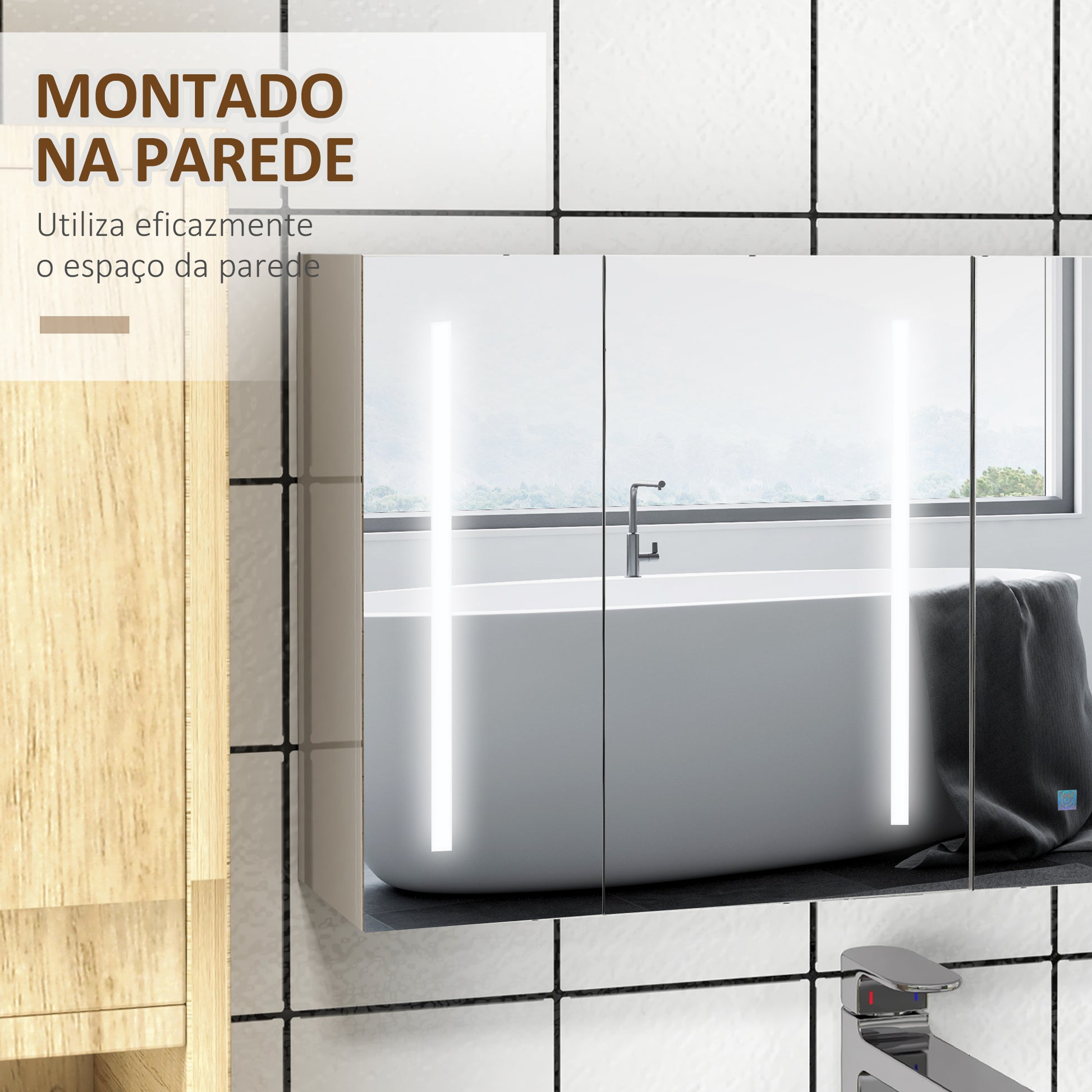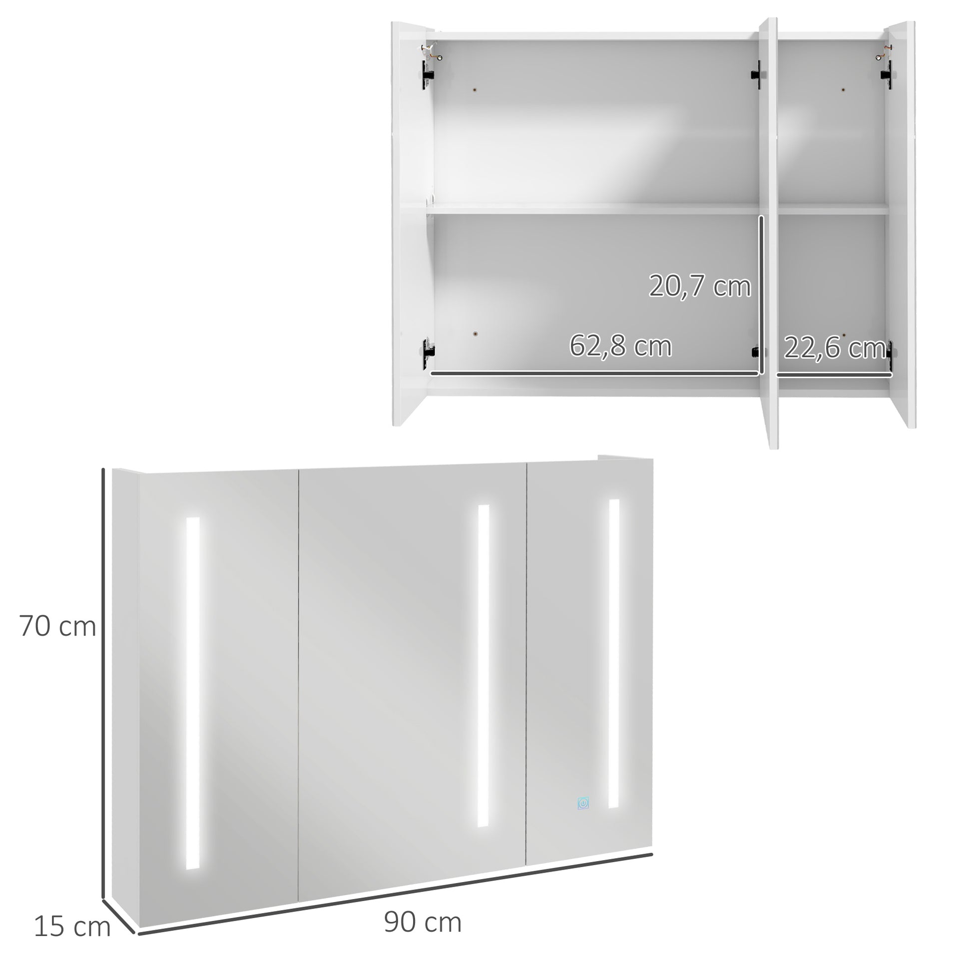 Armário de Casa de Banho LED com Espelho – 90x15x70 cm – Branco – MDF e vidro