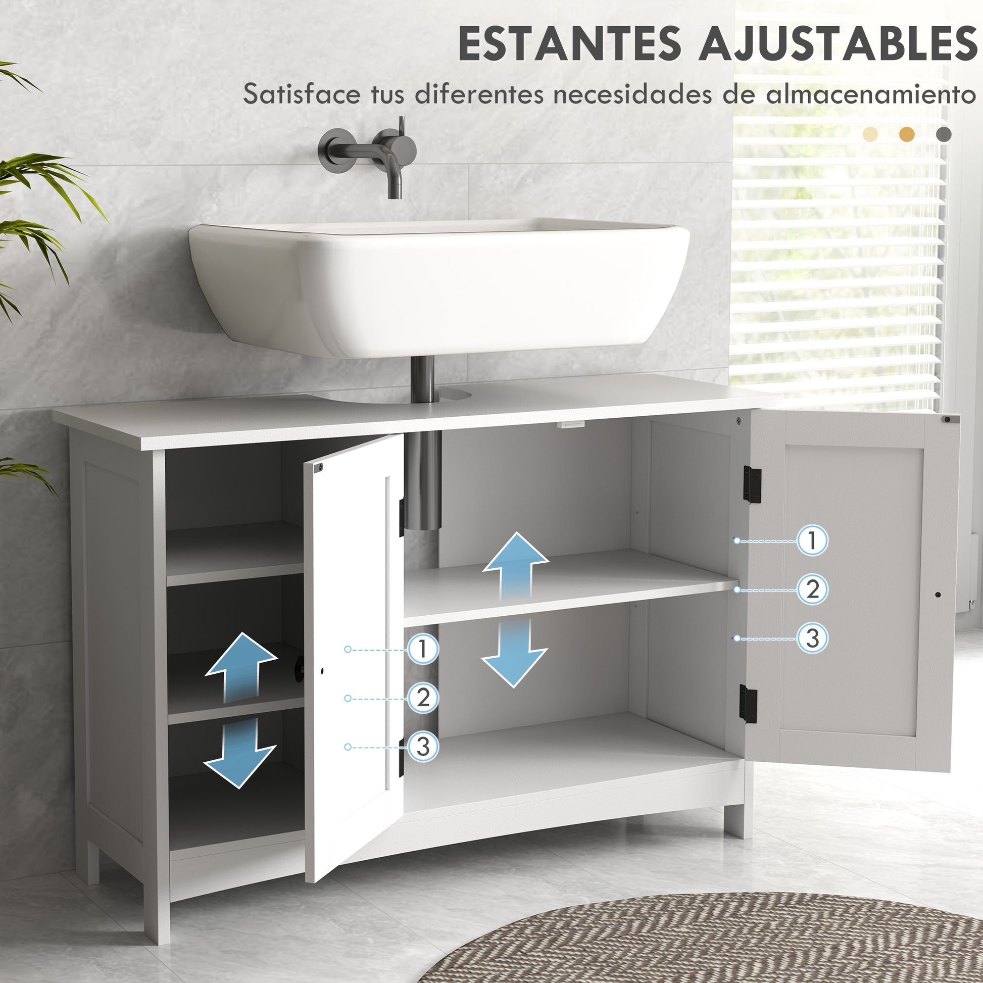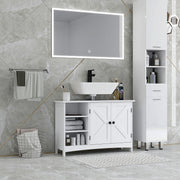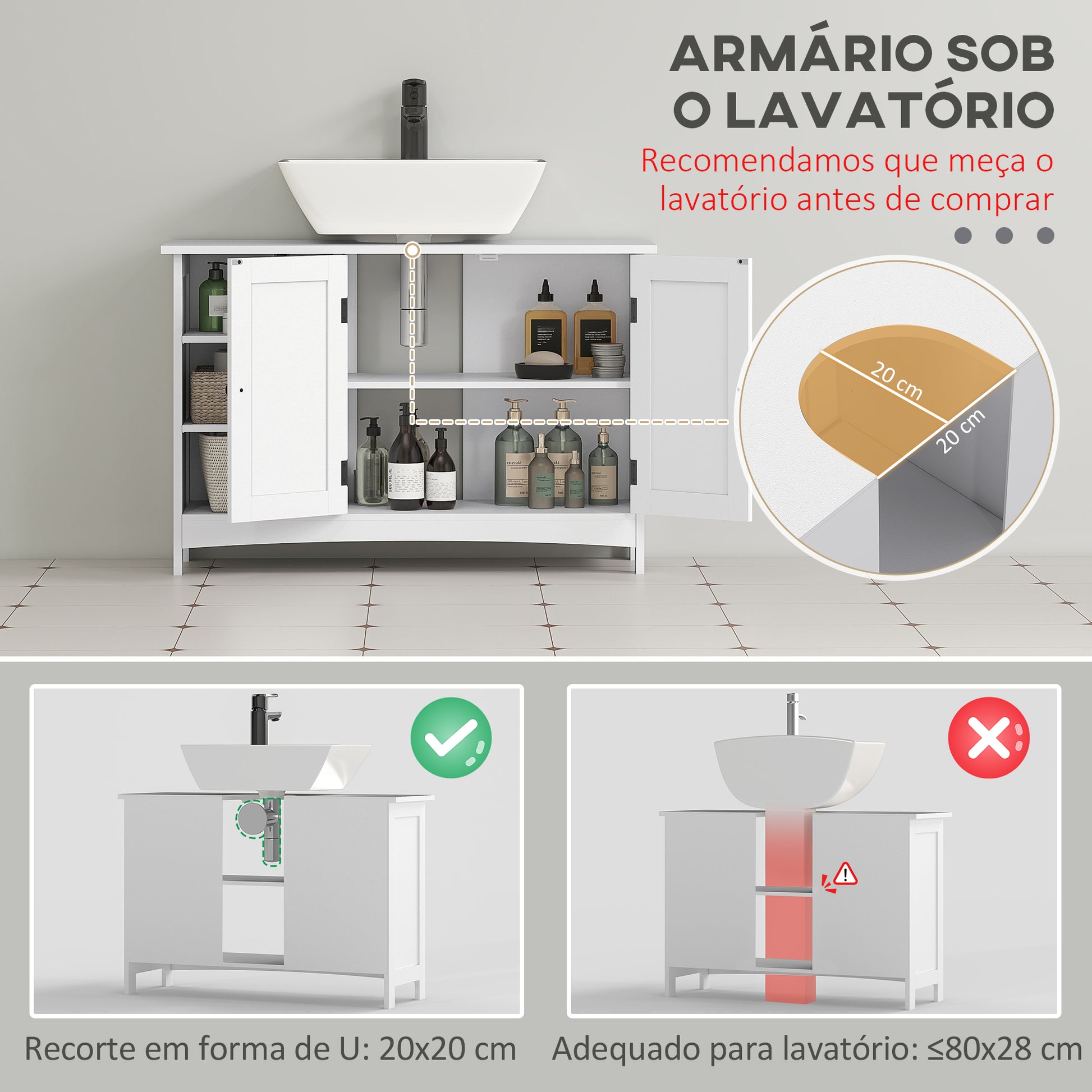 Economize espaço e mantenha sua casa de banho organizada com este móvel para lavatório branco de estilo moderno. Com 3 prateleiras abertas, armário de 2 portas e prateleira ajustável, este móvel oferece amplo espaço de armazenamento.