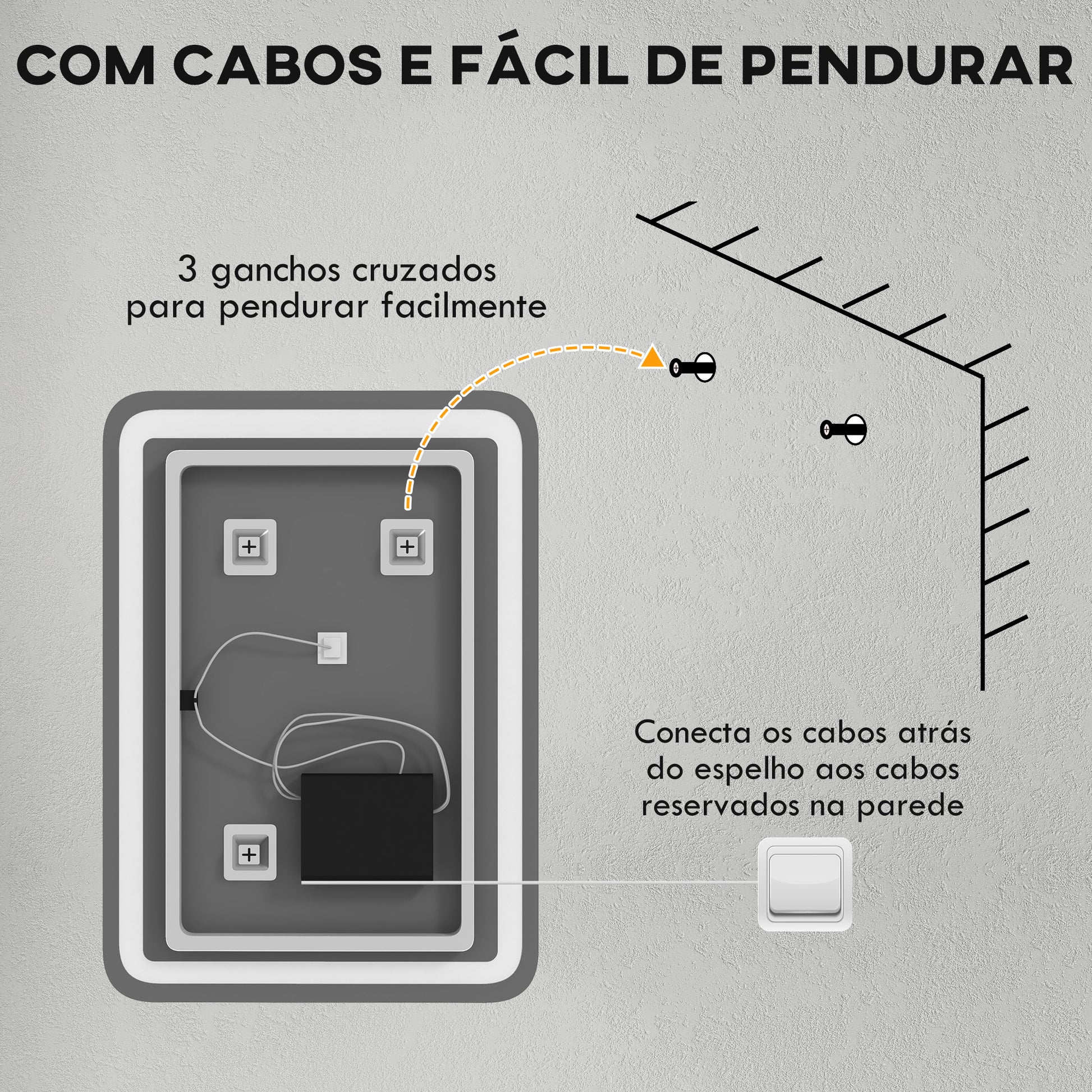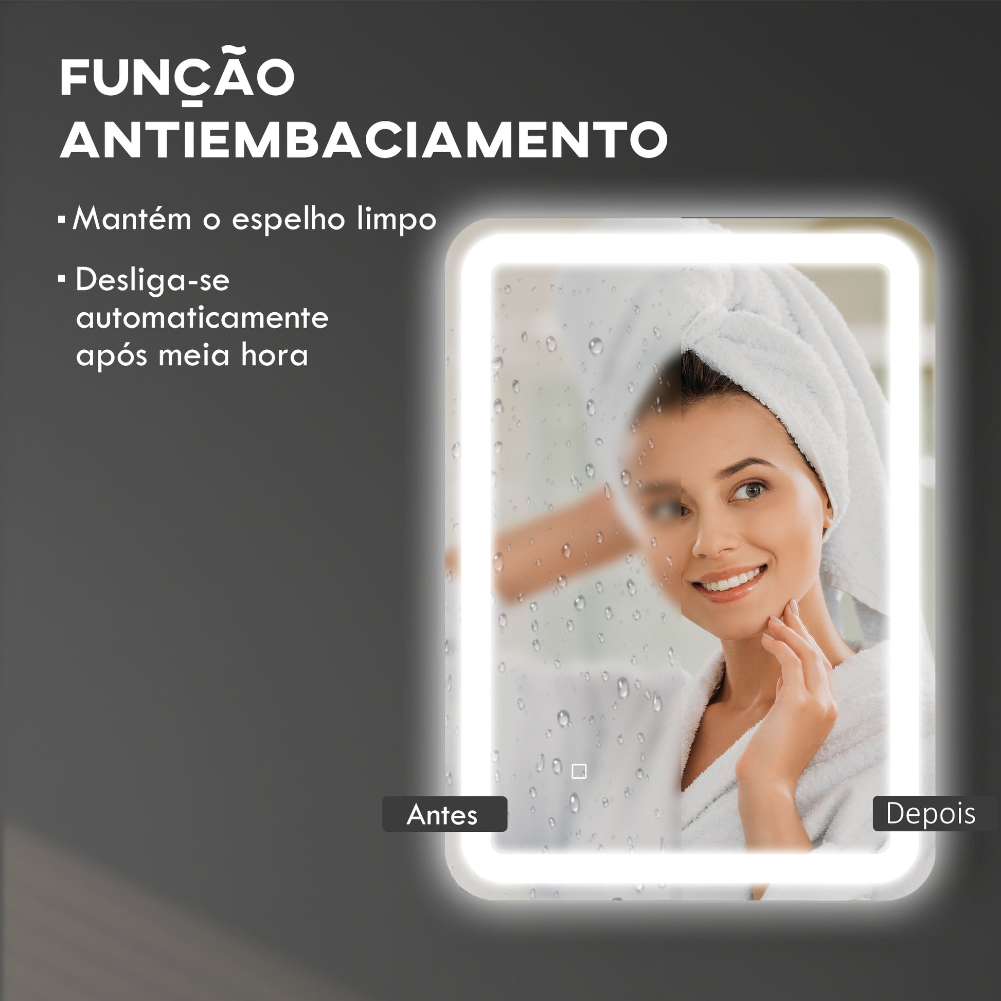 Espelho de Casa de Banho LED – 50x70 cm – Prata – Vidro temperado