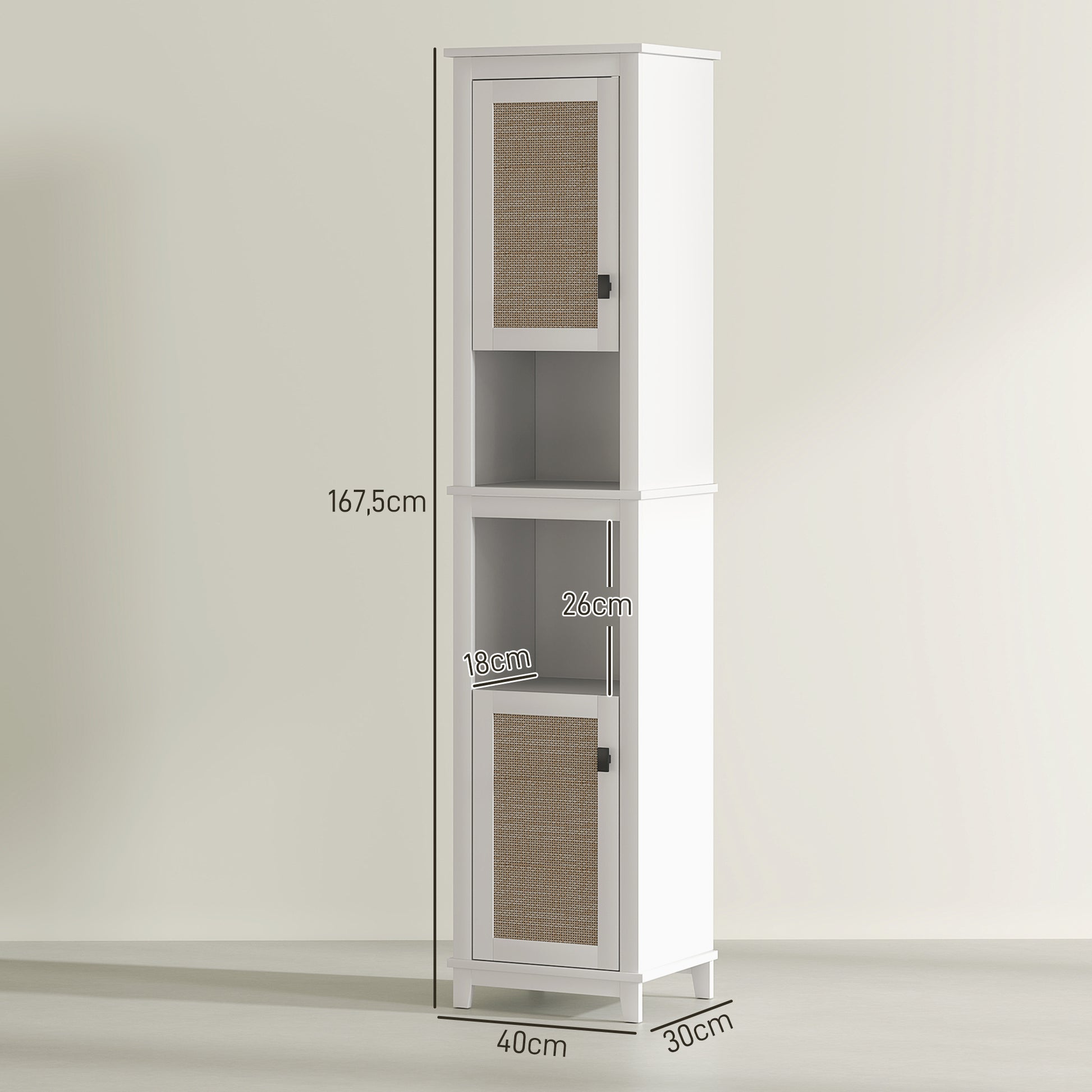 Armário Alto Casa de Banho Prateleira Ajustável Vime Branco 40x30x167,5 cm
