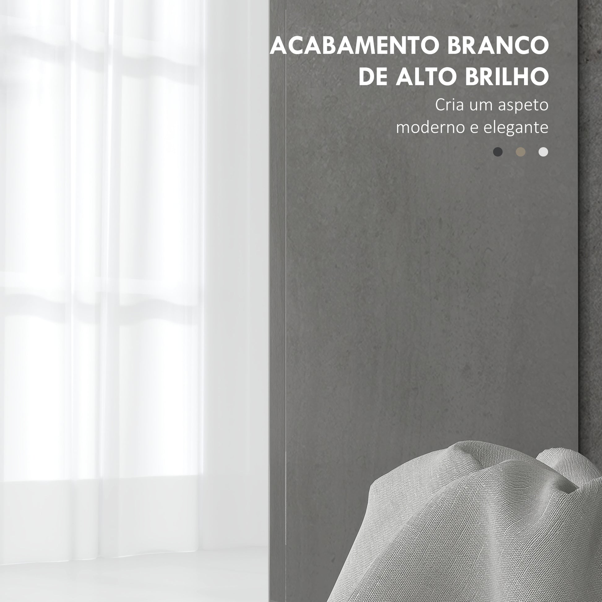 Este moderno móvel para lavatório em branco brilhante oferece uma solução inteligente de armazenamento para a sua casa de banho.