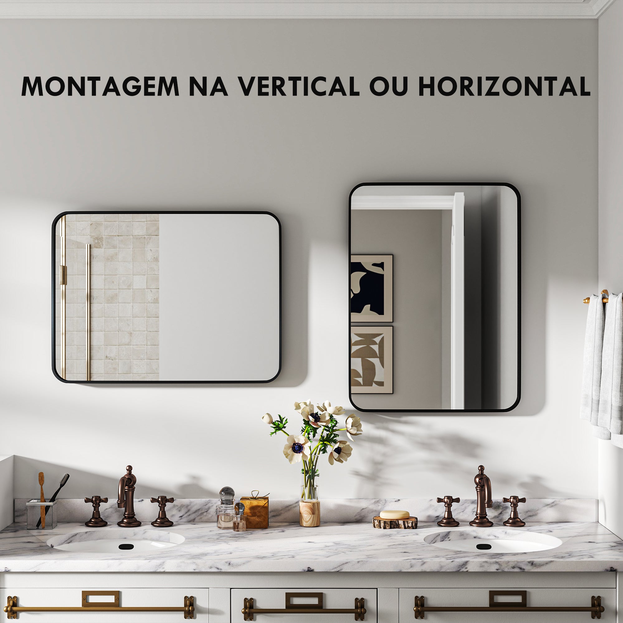 Renove a sua casa de banho com o Espelho Casa de Banho de 60x80 cm, uma adição elegante e versátil para qualquer espaço. Este espelho retangular pode ser instalado na vertical ou horizontal, adaptando-se ao seu estilo e necessidades.