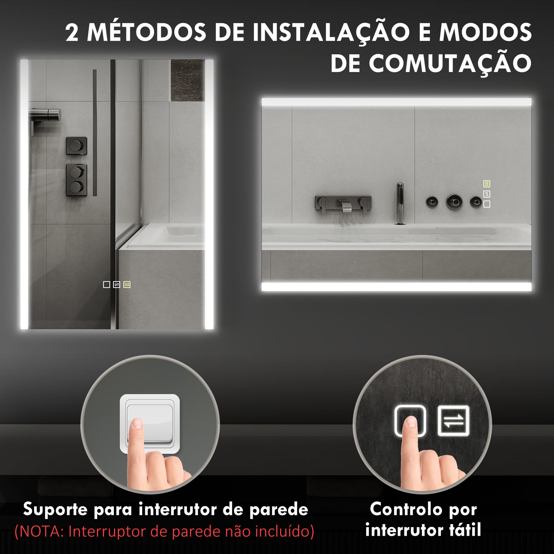 Espelho de Casa de Banho LED 70x50 cm Prata Antiembaciamento IP44