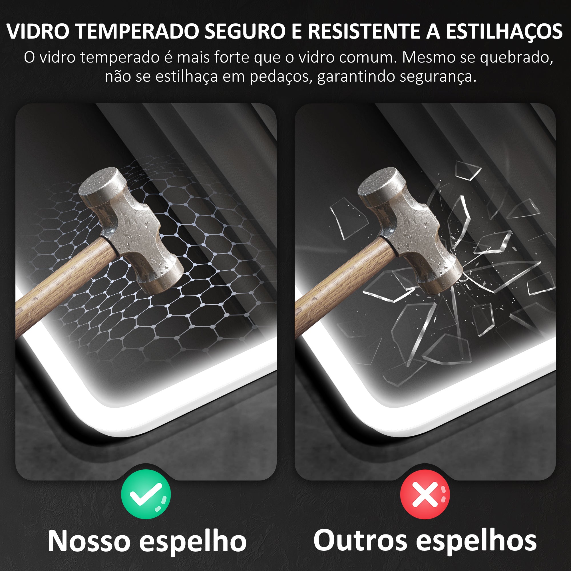 - Usos recomendados: Perfeito para uso diário na casa de banho, proporcionando uma visão clara e iluminação personalizável