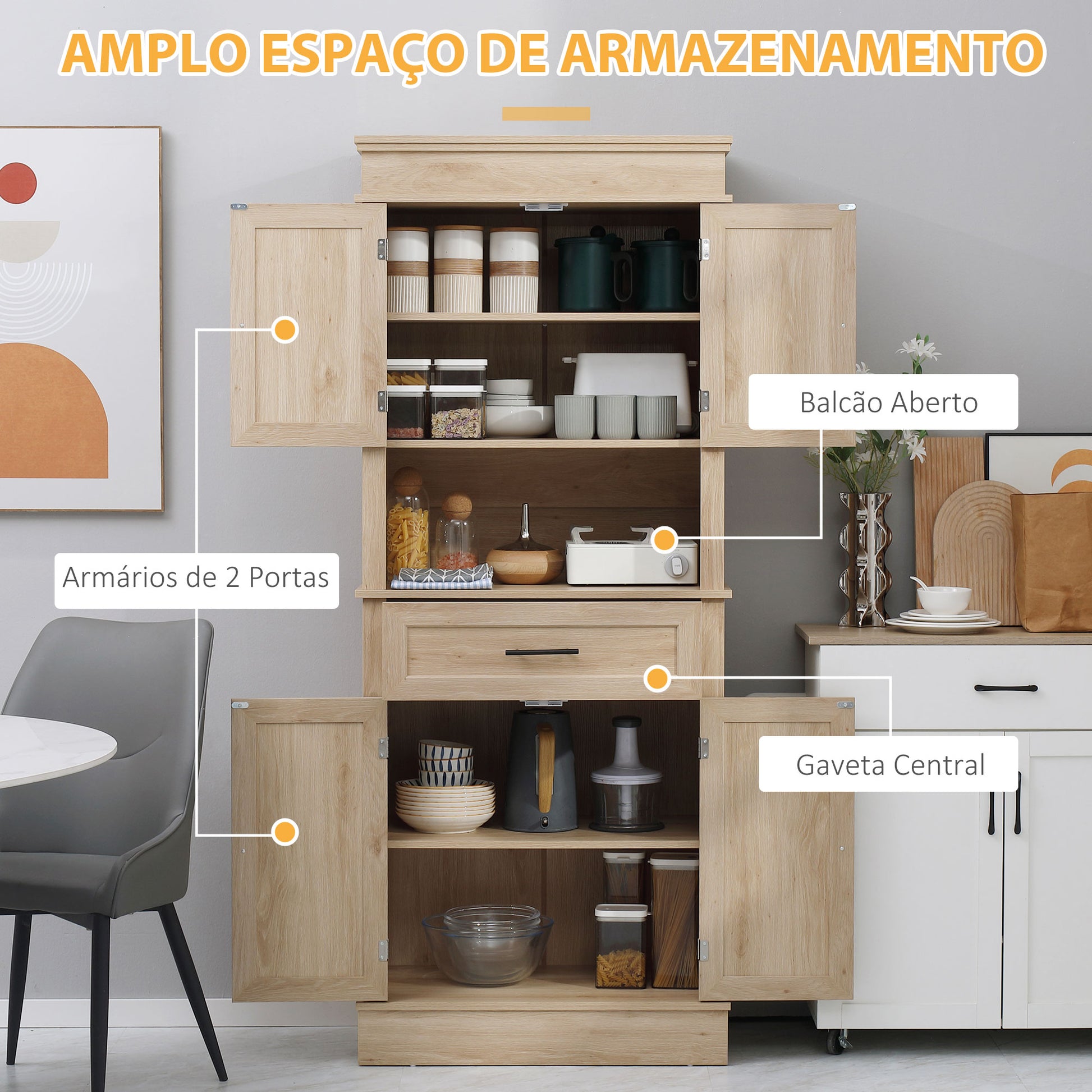 Armário Móvel Auxiliar de Cozinha – 74x39,5x183cm – Cor de Carvalho – Melamina de Madeira e MDF