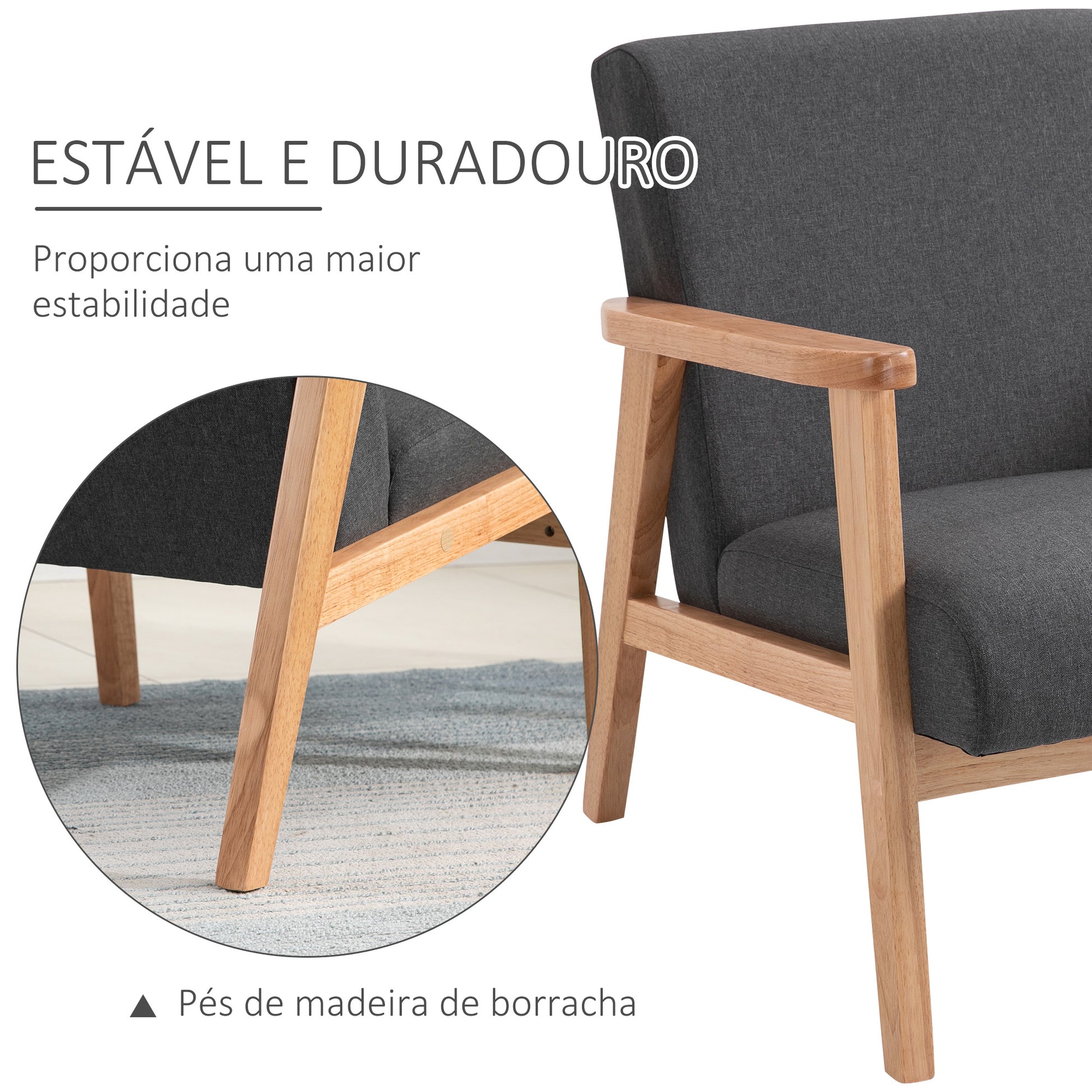 Poltrona Estofada em Linho Sintético Cinza Escuro 68,5x78,5x75 cm