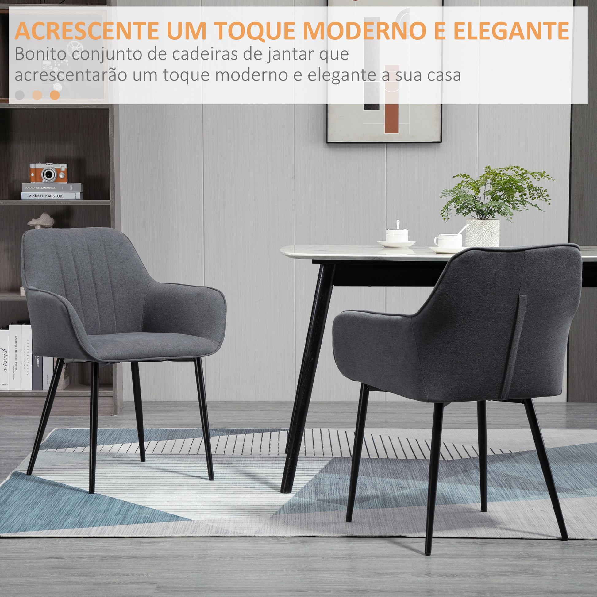 Renove o seu espaço com este conjunto de 2 cadeiras estofadas em linho cinzento, ideais para a sala de jantar ou escritório.