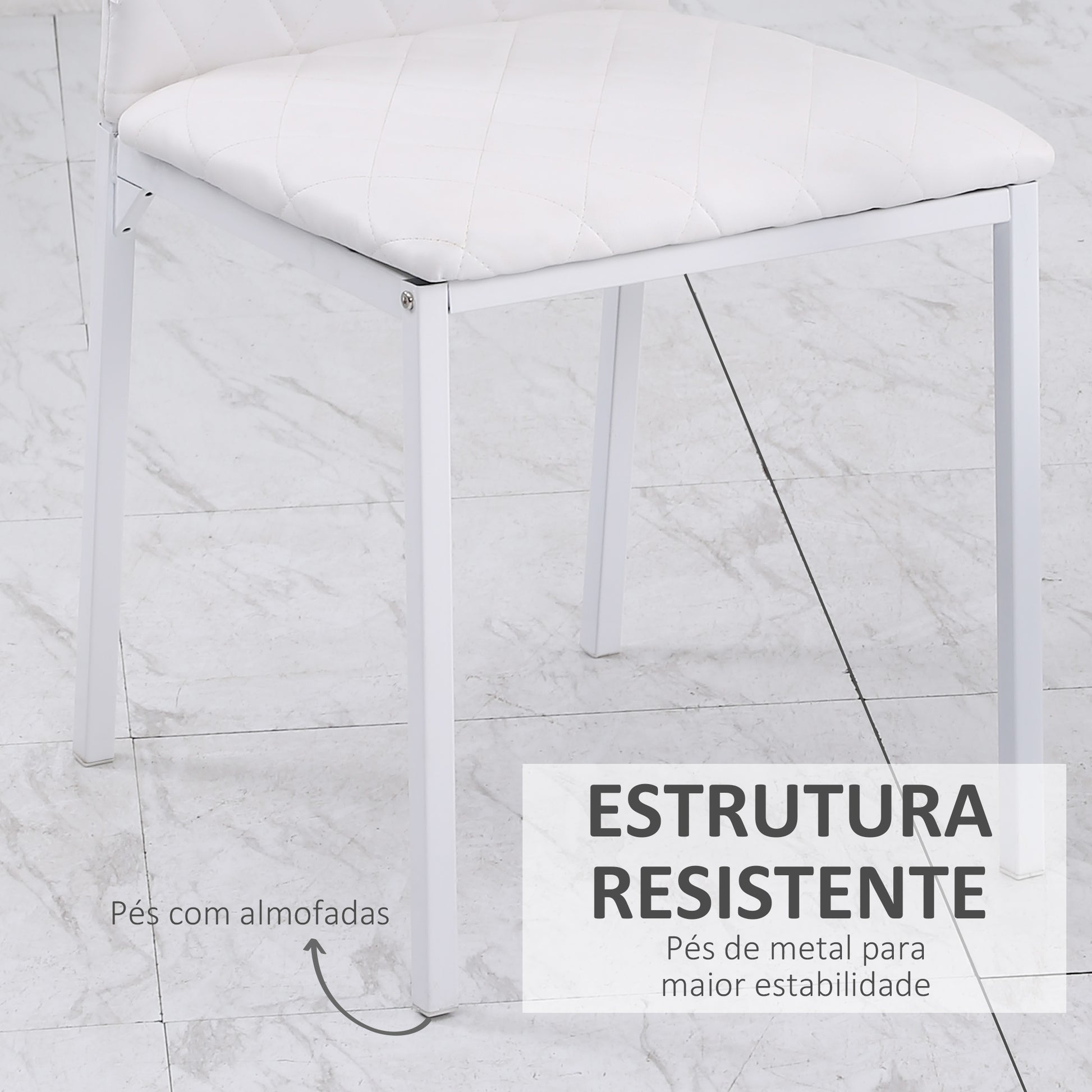 Conjunto de Cadeiras Estofadas – 41x50x91cm – Branco – Couro Sintético e Metal