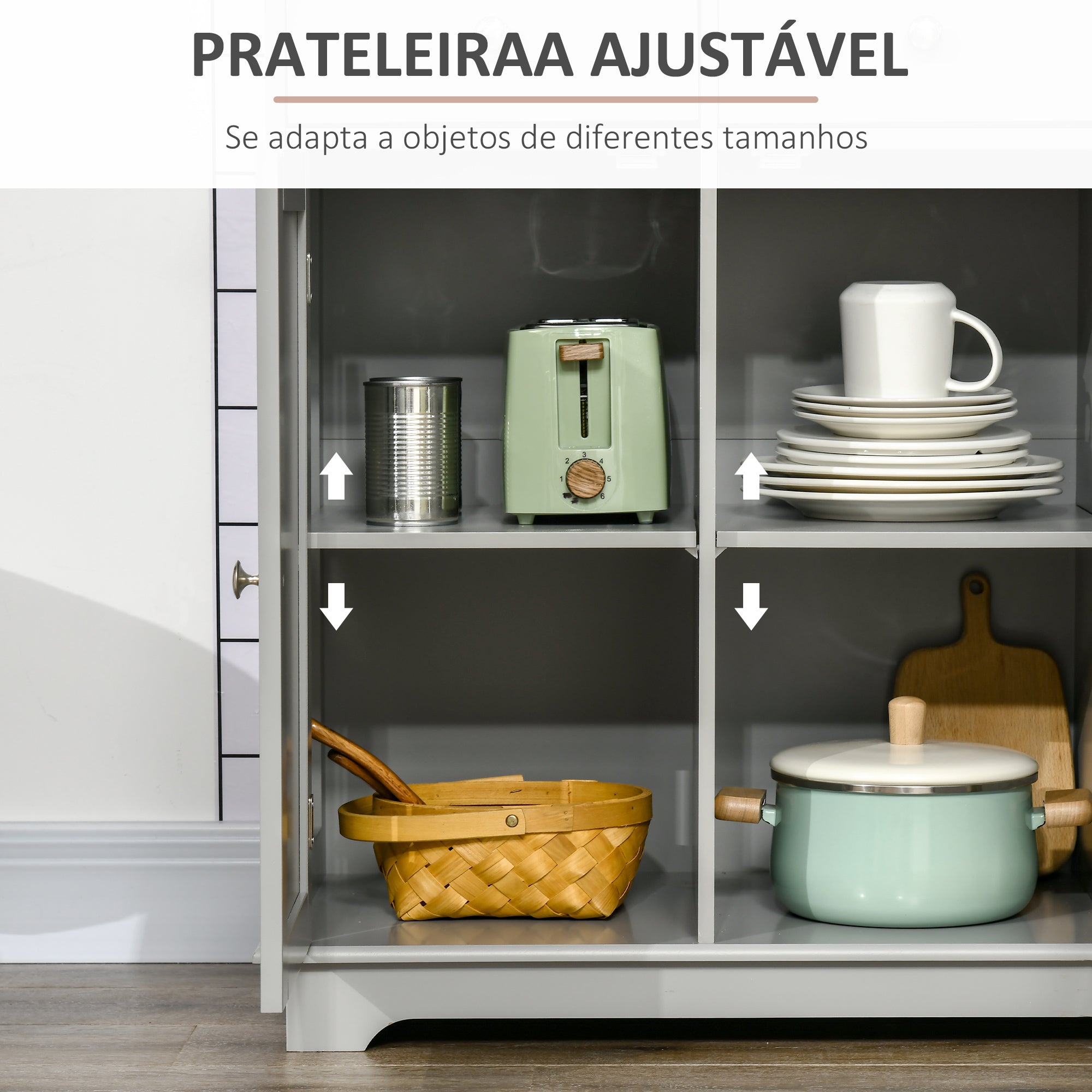 O Aparador de Cozinha em Cinza Claro de 101x40x85 cm é o móvel auxiliar perfeito para a sua cozinha ou sala de estar. Com um design moderno e funcional, este aparador oferece um amplo espaço de armazenamento e prateleiras ajustáveis para satisfazer todas as suas necessidades.