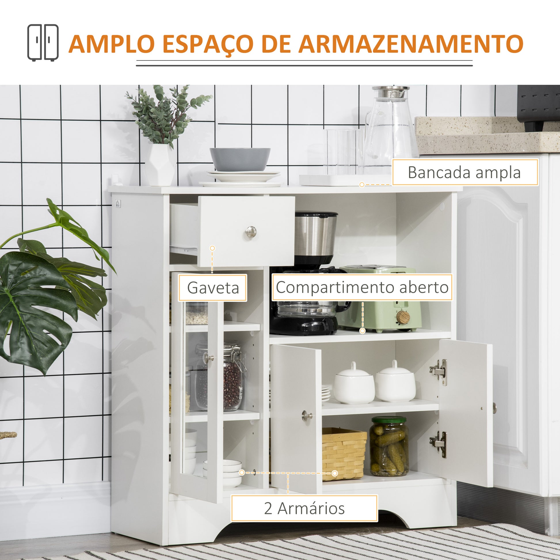 Aparador de Cozinha Moderno – 80x30x82cm – Branco – Melamina