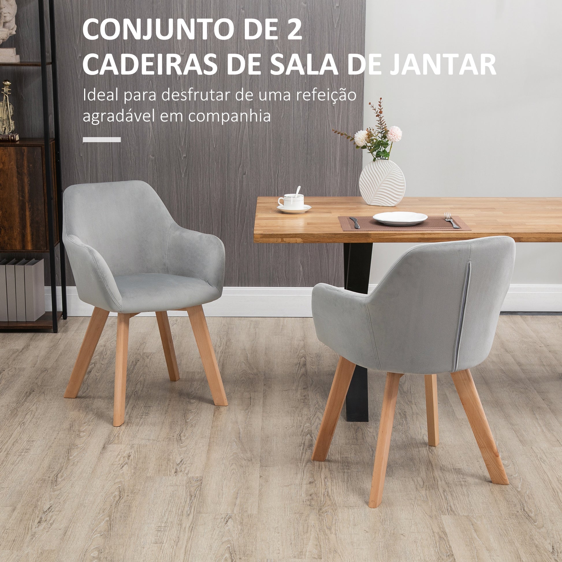 Conjunto de 2 Cadeiras de Sala de Jantar Estofadas em Veludo 54x57x80cm Cinza