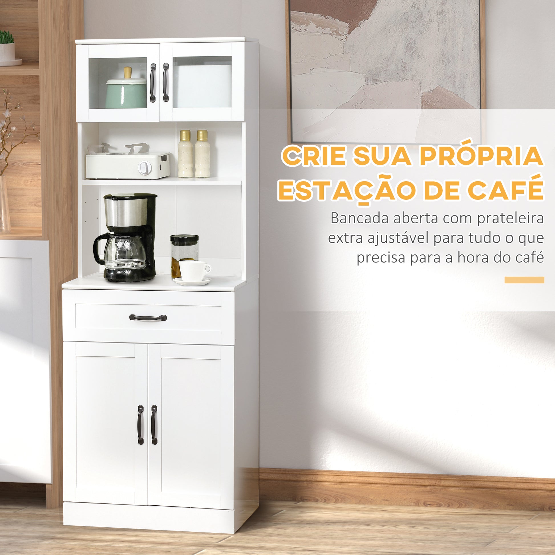 Armário de Cozinha Moderno – 60x38x161 cm – Branco – MDF e vidro temperado
