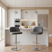 Ideal para cozinhas, bares e balcões, este conjunto de 2 bancos estofados em pelúcia na cor cinza proporciona não só um assento confortável, mas também um toque elegante ao ambiente.