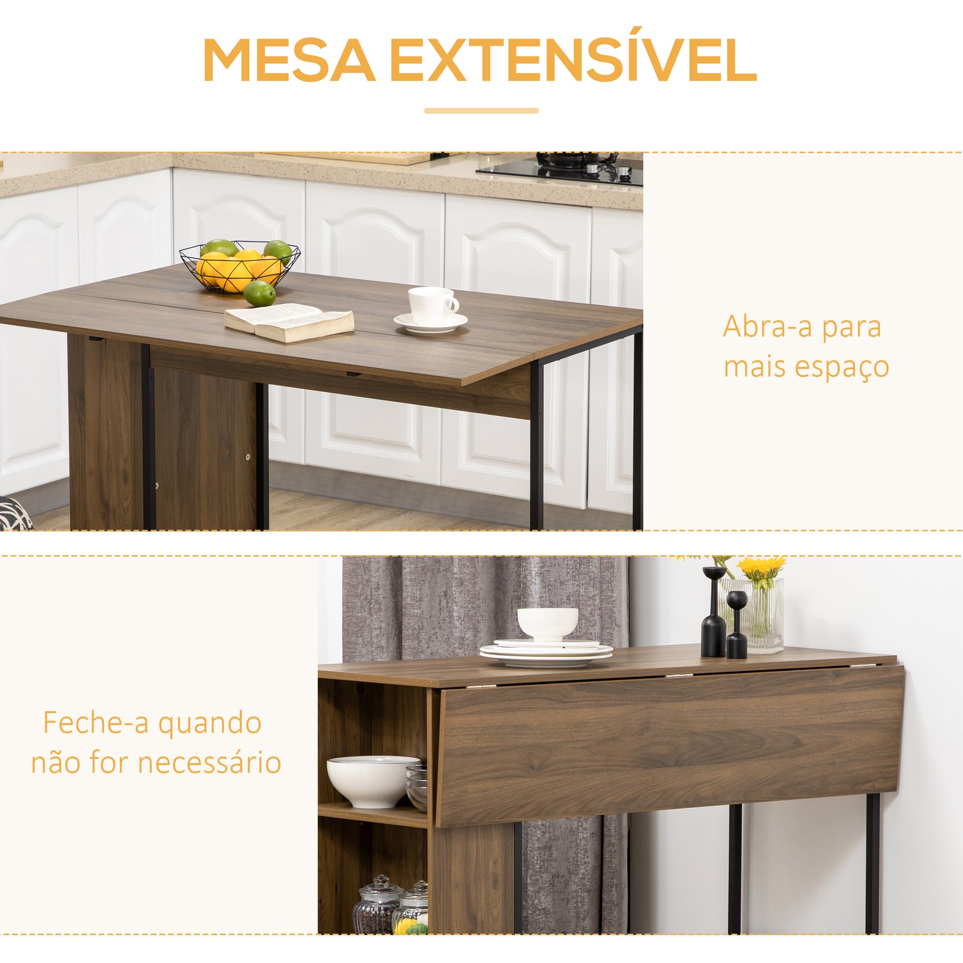 Mesa de Bar Extensível com 3 Prateleiras de Armazenamento - Marrom 120x76x91,4 cm