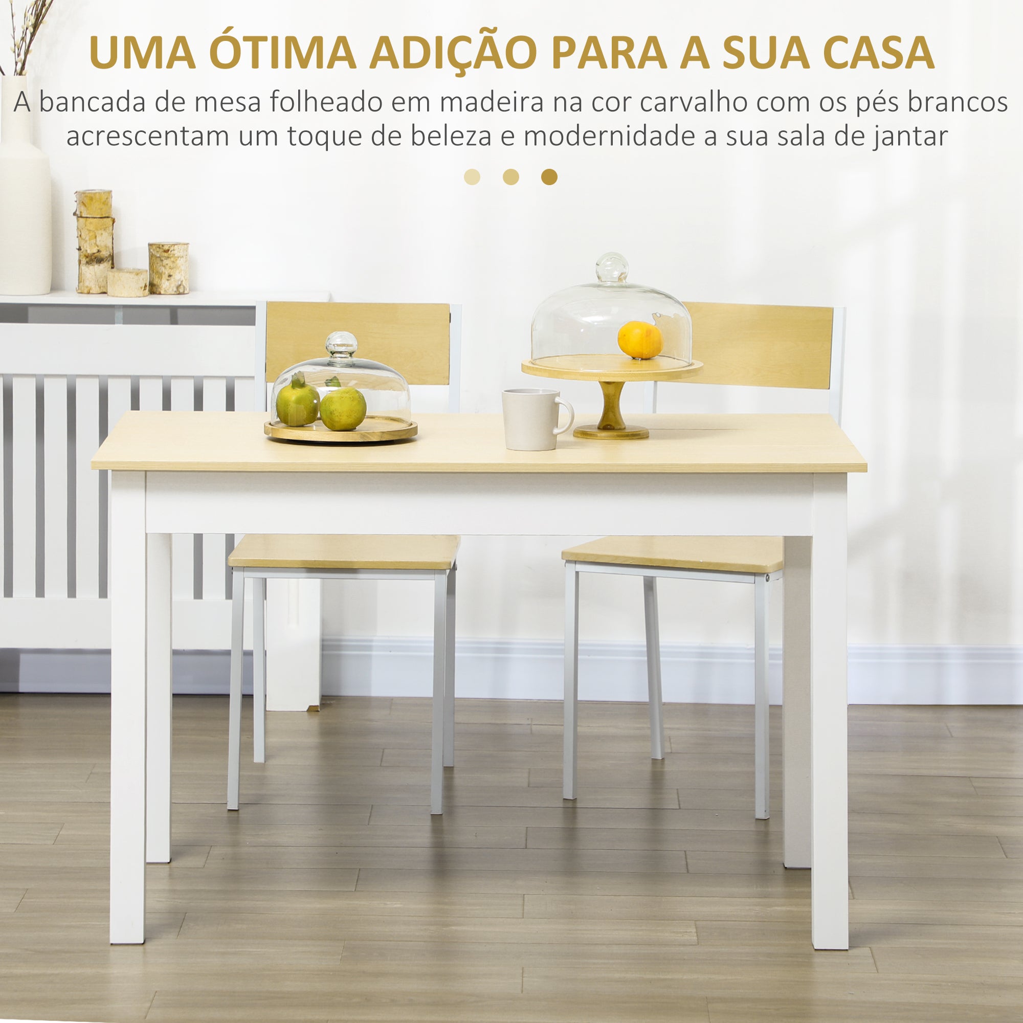 Adicione um toque moderno e elegante à sua sala de jantar com esta mesa retangular em carvalho e branco.