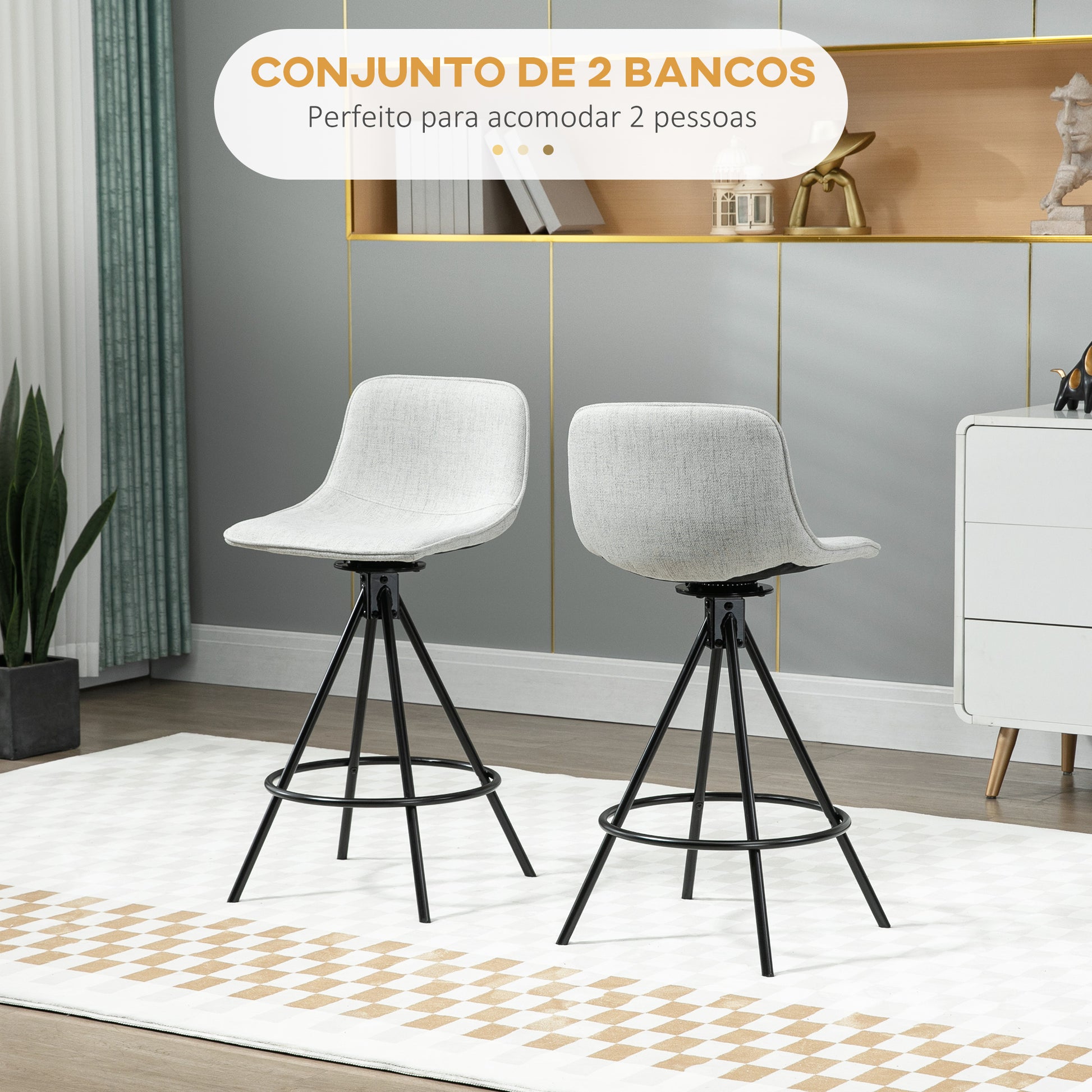 Bancos Altos de Cozinha – 41,5x47,5x90 cm – Cinza Claro – Poliéster e Aço