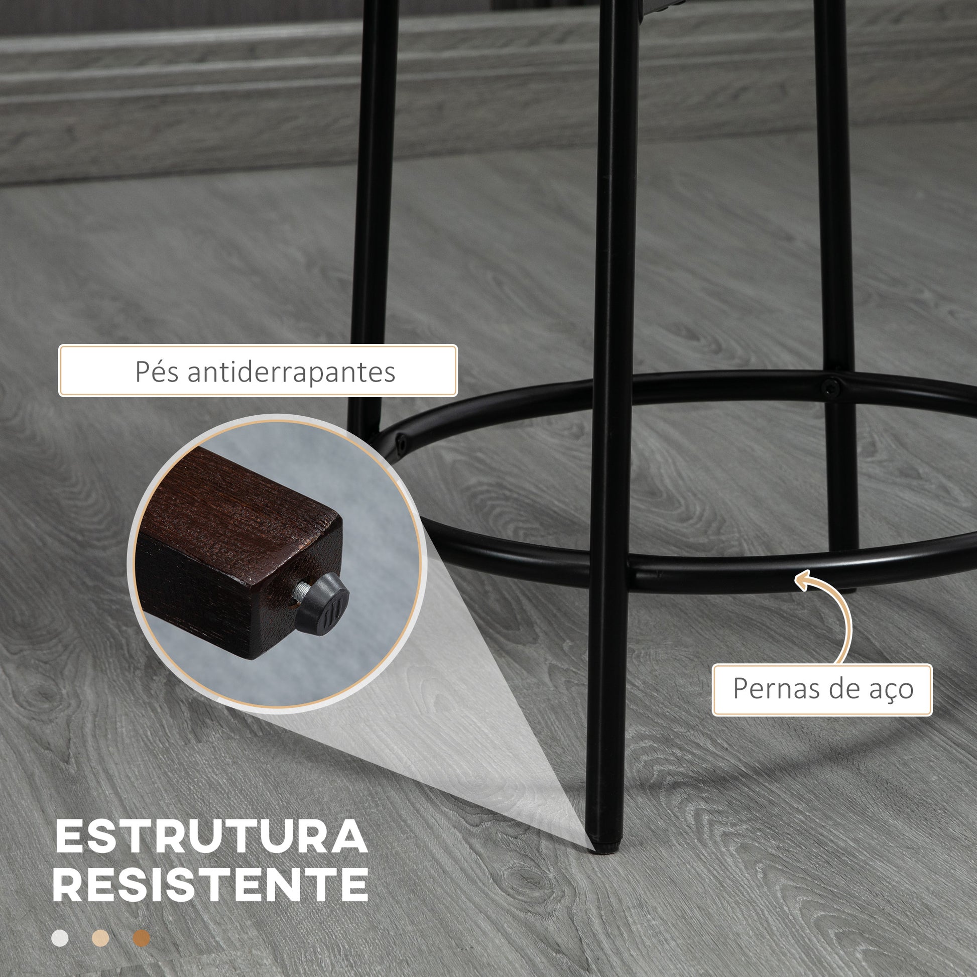 Estes bancos altos são elegantes, duráveis e oferecem um assento confortável para as suas refeições e momentos de convívio em casa.