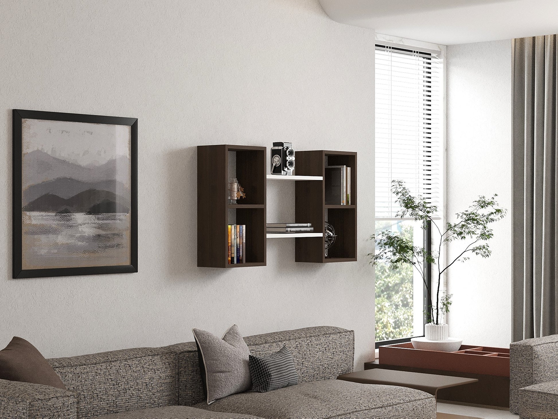 Prateleira de parede – 105 cm x 60 cm x 20 cm – Branco e Nogueira – Painel de partículas revestido a melamina