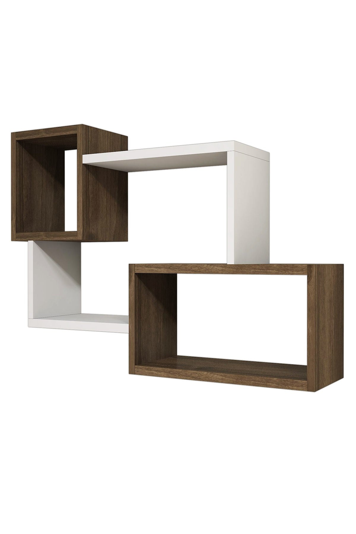 Prateleira de parede – 90.6 cm x 51 cm x 22 cm – Branco e Nogueira – Painel de partículas revestido a melamina