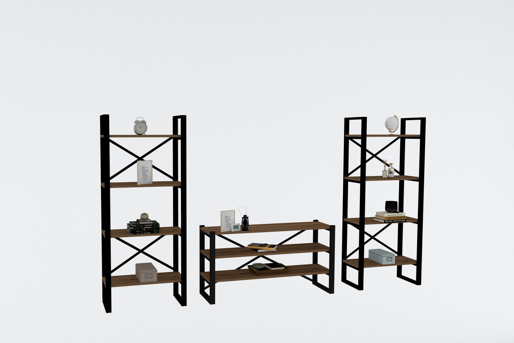Com um design elegante e moderno, o nosso móvel para televisão dá um toque de sofisticação a qualquer sala de estar. A estrutura metálica de inspiração industrial combinada com a cor quente da nogueira cria uma atmosfera única e convidativa que impressionará os seus convidados.