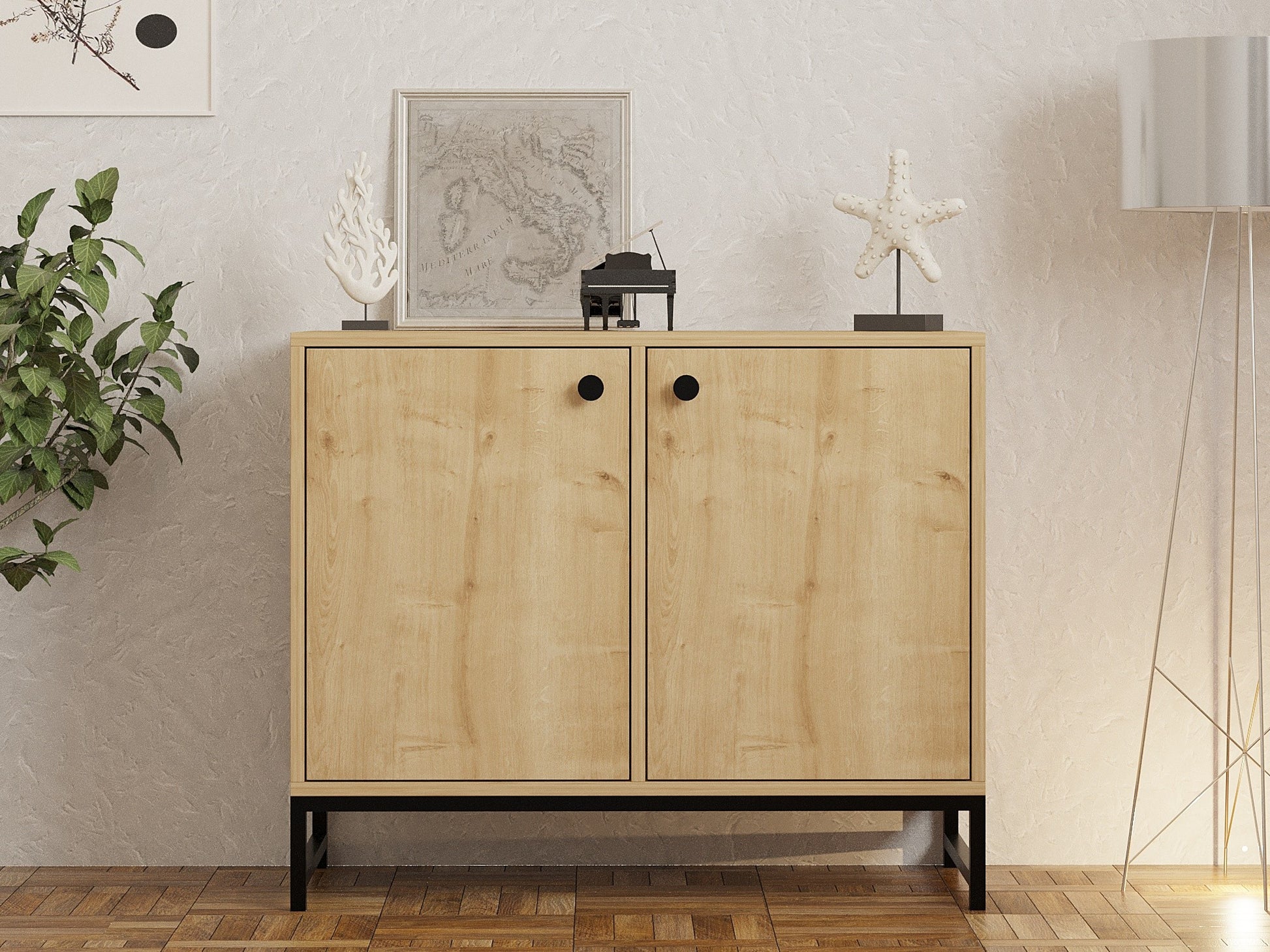 Fabricada a partir de painéis de partículas 100% revestidos a melamina, a nossa consola foi concebida para durar. A espessura de 18 mm garante a sua força e durabilidade, tornando-a resistente ao desgaste diário. As pernas metálicas proporcionam estabilidade adicional, garantindo que a consola se mantém estável mesmo com uma utilização intensa. A combinação das cores safira e preto dá um toque de sofisticação a qualquer divisão, tornando-a perfeita para uma decoração moderna e industrial.