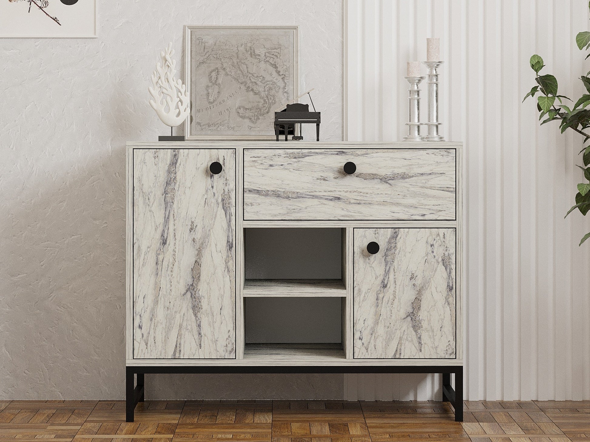 Aparador em mármore freesia – 90cm x 75cm x 40cm – Mármore Freesia – Painel de partículas revestido a melamina